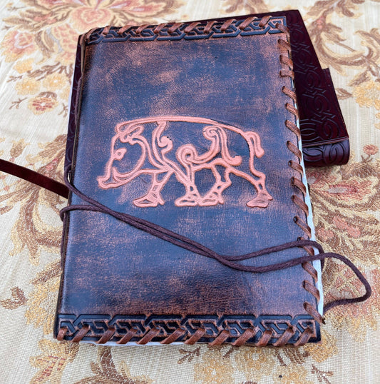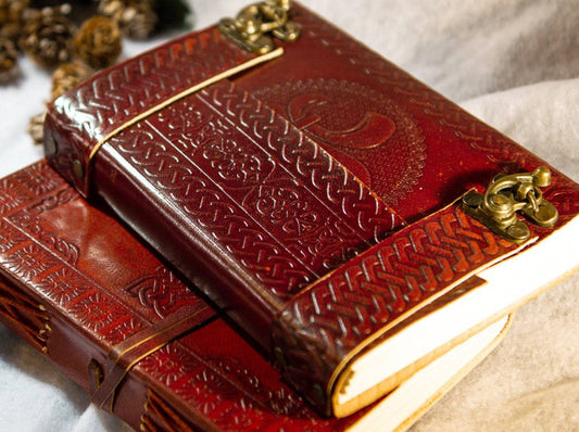 Captain's Journal Book in Dark Brown Leather with anchor on cover