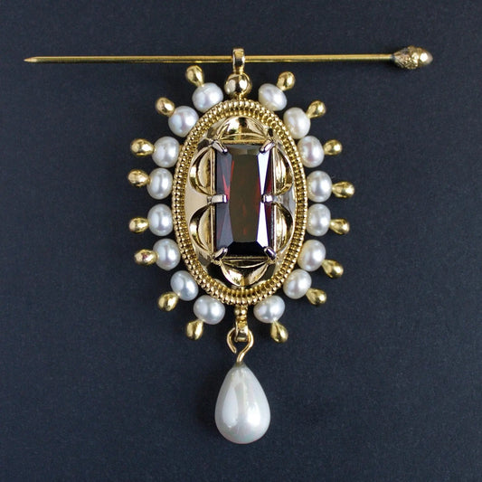 Renaissance Pendant Brooch with Red Stone and Pearls