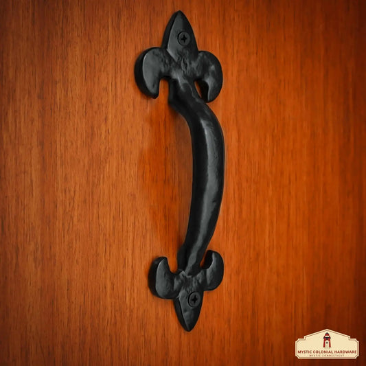 Smooth Iron Door Handle with Fleur de Lys - 7 inches