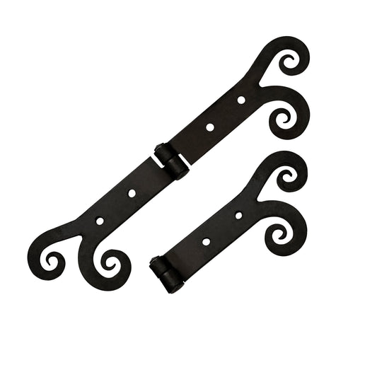 Pair of 10 inch medieval hinges with subtle gothic curled ends