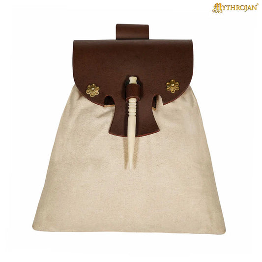 Medieval-style Canvas, Wool and Leather Pouch with Bone Toggle
