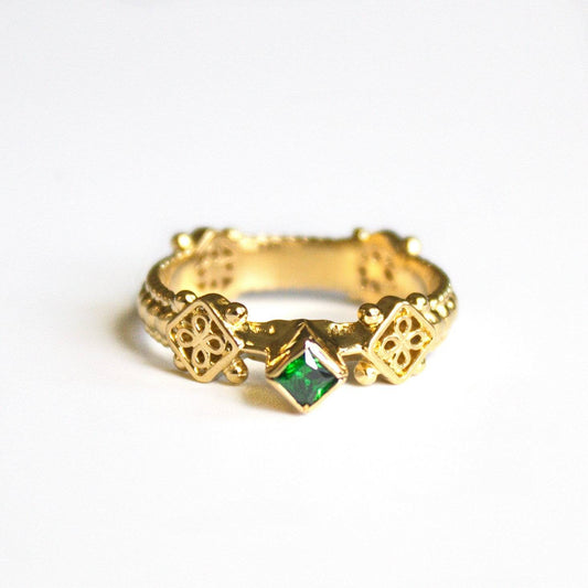 Green Stone Medieval Filigree Ring ca. 1400-1500