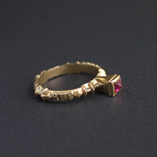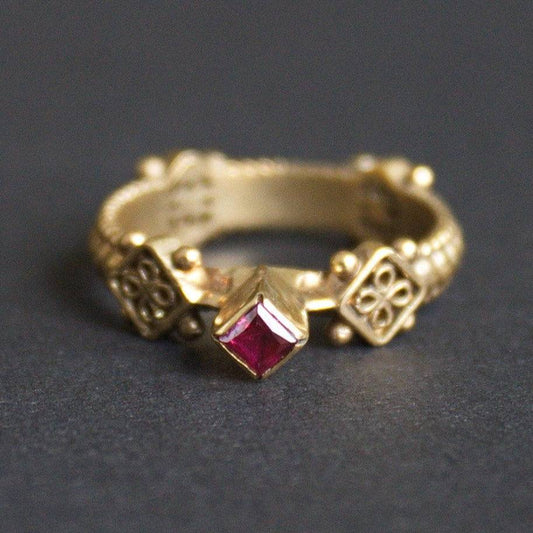Red Stone Medieval Filigree Ring ca. 1400-1500