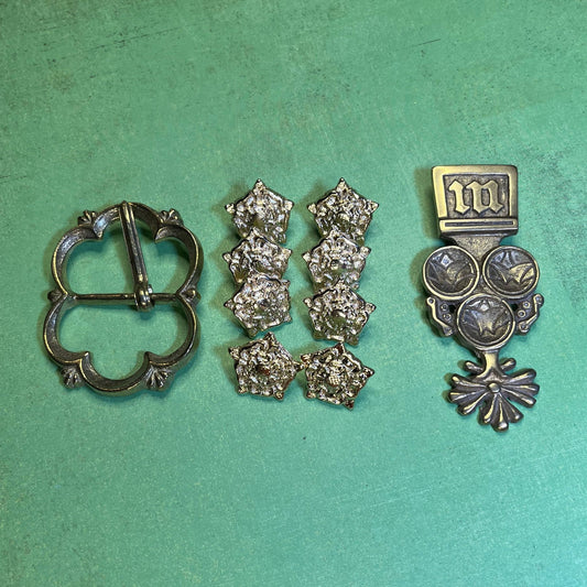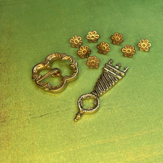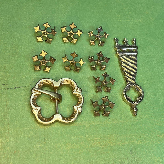 Ensemble de raccords de ceinture médiévale - Marguerites et extrémité de sangle quadrilobe - Ensemble de ceinture de vacances