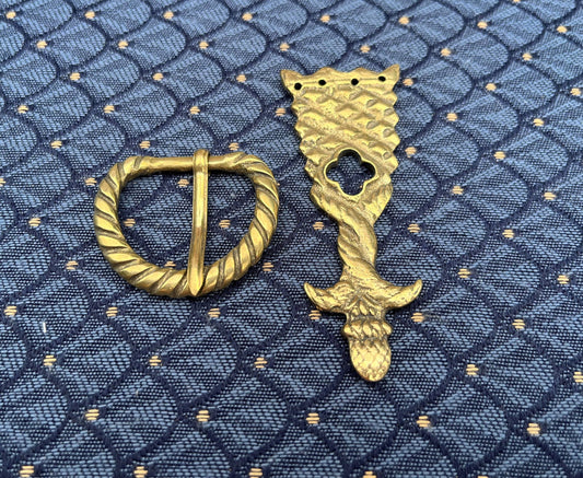 Ensemble boucle et embout de sangle médiéval - 2 pièces