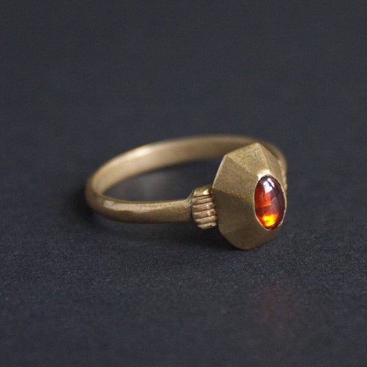 Tart Mold Style Ring With Glass Stone from the 13th or 14th Century