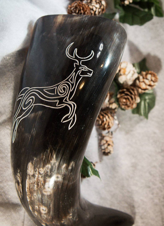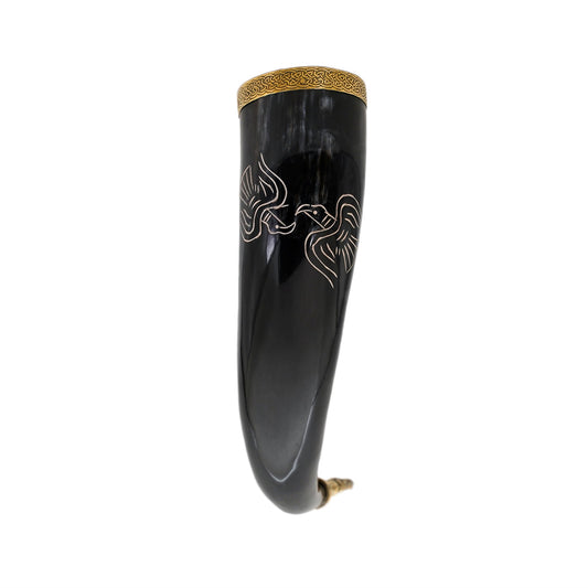 Cadeau de corne à boire Viking - avec deux corbeaux