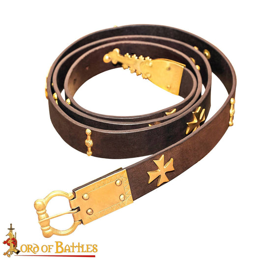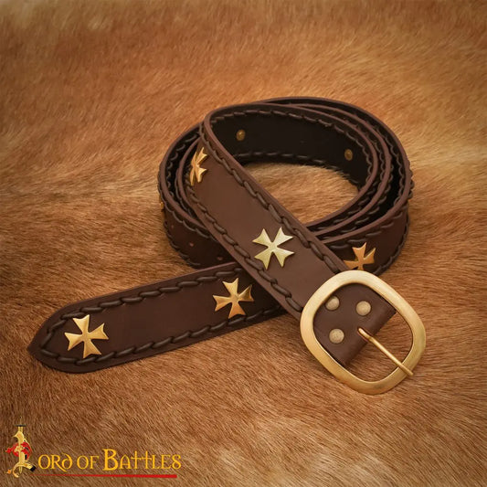 Medieval Fantasy Belt with Brass Maltese Cross Fittings