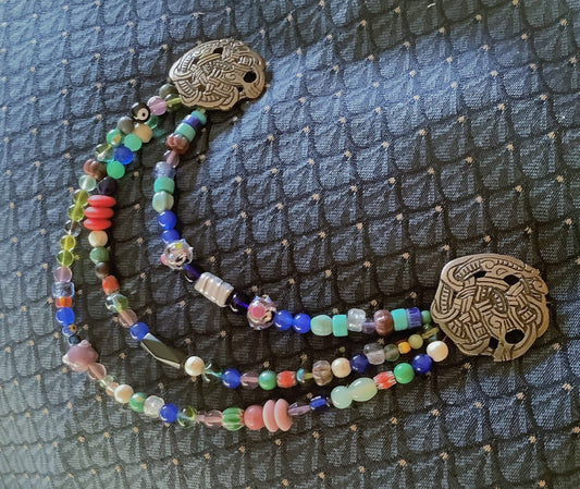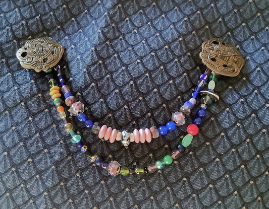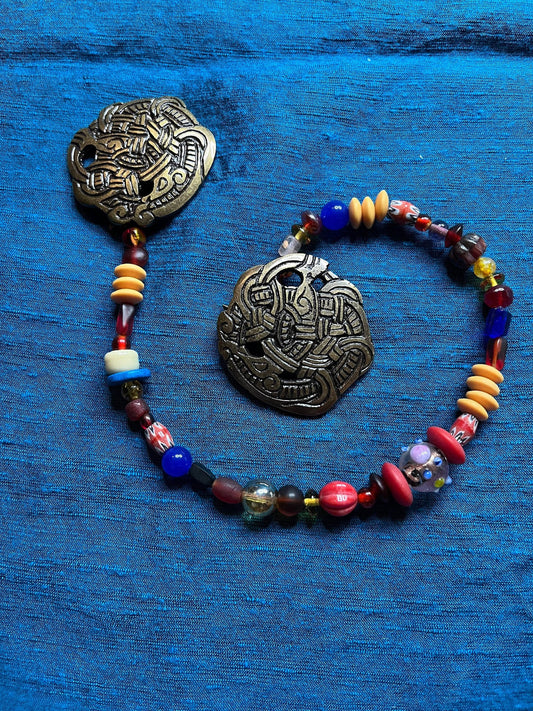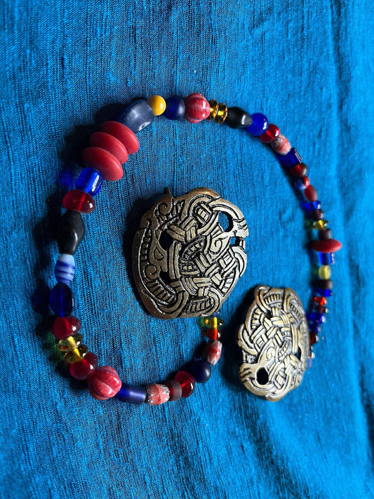Broches rondes Viking et cordon de perles de verre