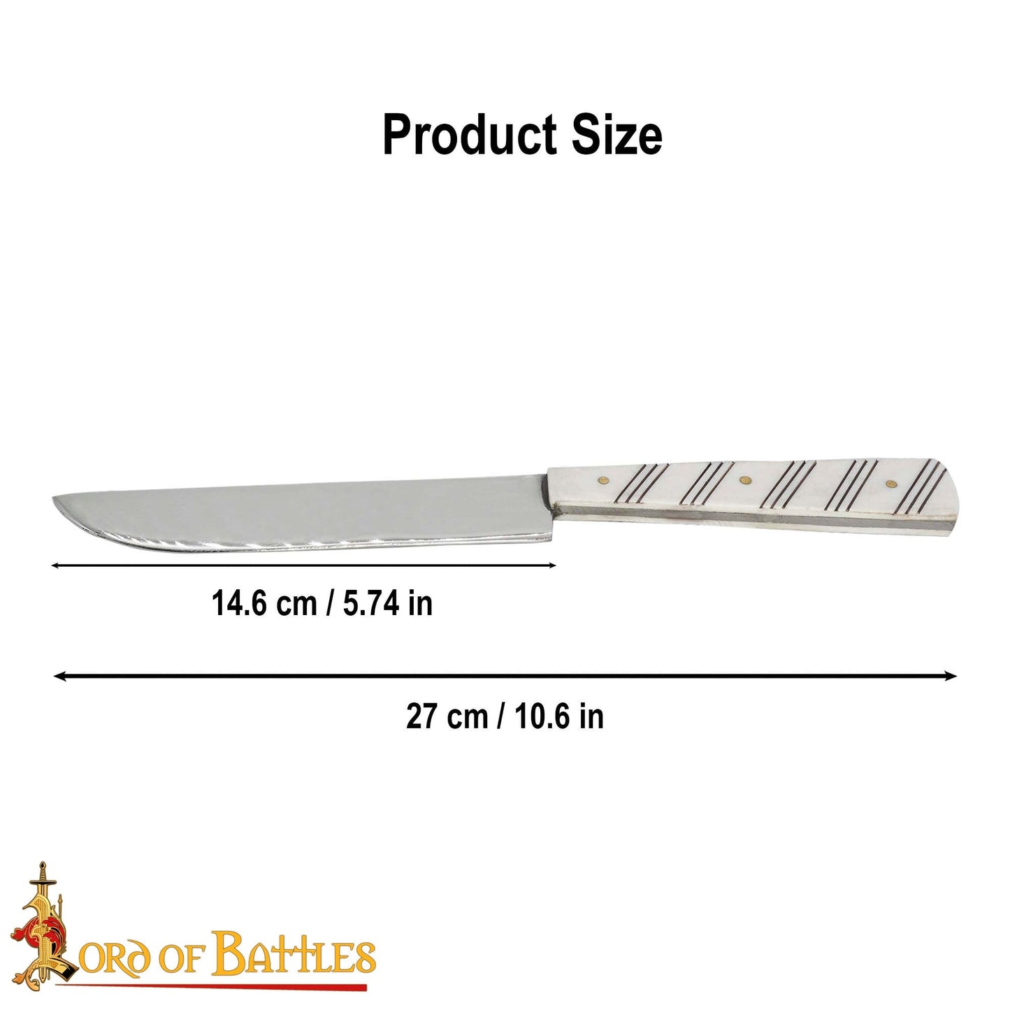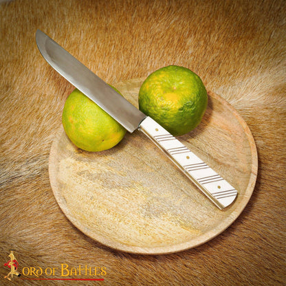 Ce qui rend ce couteau de 27 cm (longueur approximative) exceptionnellement meilleur que les autres, c'est son caractère authentique et robuste. Le manche est fabriqué à partir d’un OS D’ORIGINE ÉTHIQUE, riveté au couteau à l’aide de rivets en laiton robustes. La lame de 14,6 cm (longueur approximative) est émoussée pour des raisons de sécurité mais peut être affûtée en fonction de son utilisation.
