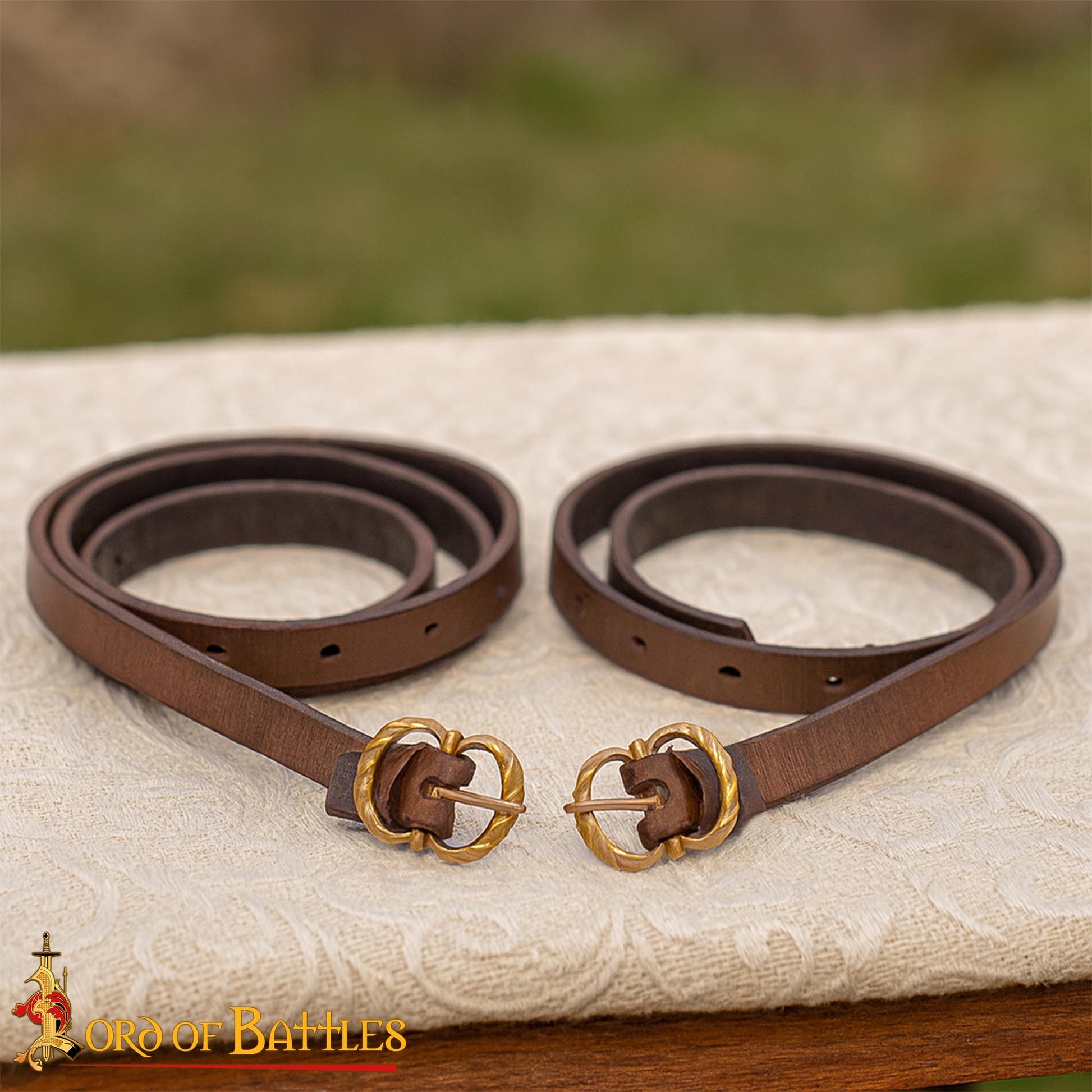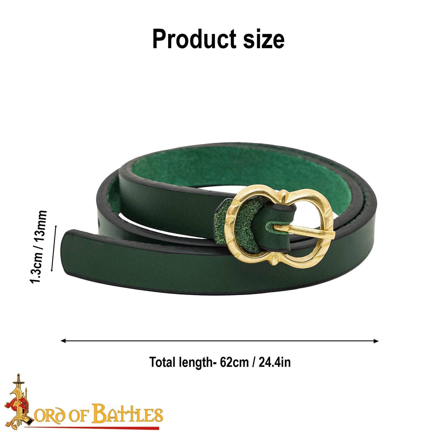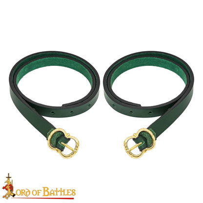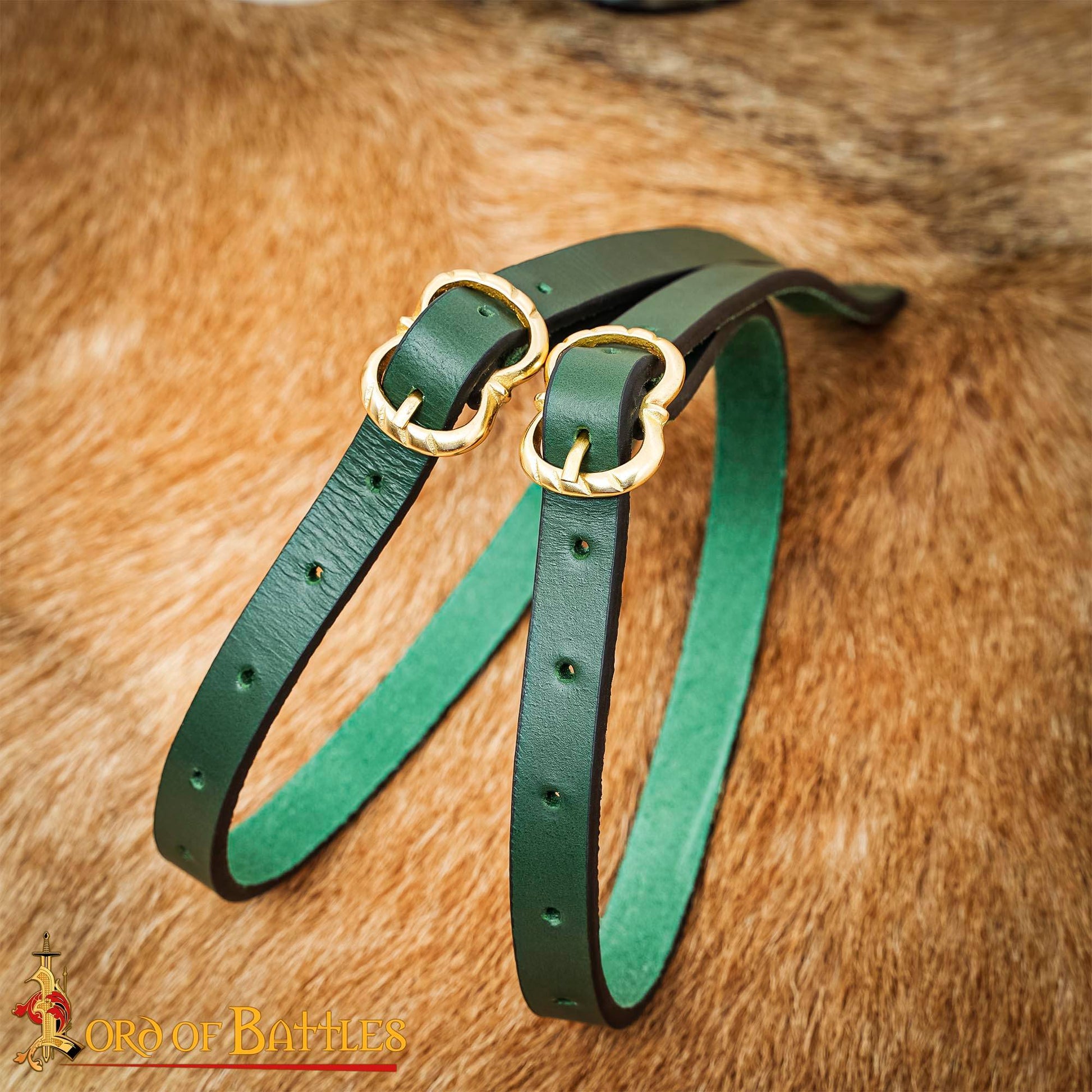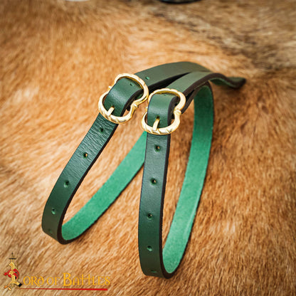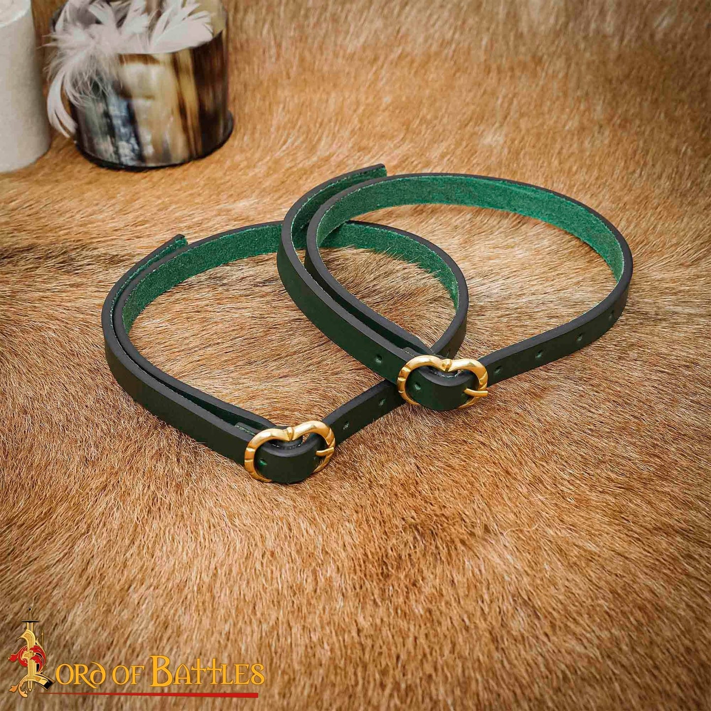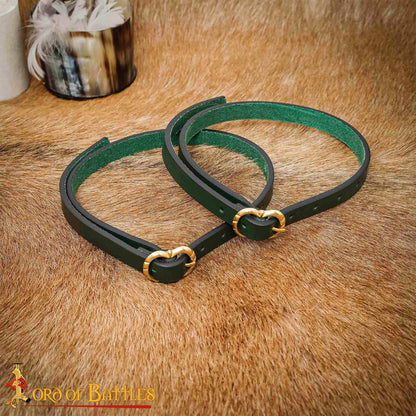 Fabriquées en cuir vert de première qualité, ces jarretières sont dotées d'une boucle en laiton authentique et ajoutent la touche de style parfaite à n'importe quel costume médiéval. Les jarretières sont conçues aussi bien pour les hommes que pour les femmes et sont l'accessoire idéal pour maintenir les chaussettes. Avec ses détails authentiques, vous pouvez faire confiance à ces jarretières pour apporter un niveau supplémentaire de sophistication médiévale à votre look.