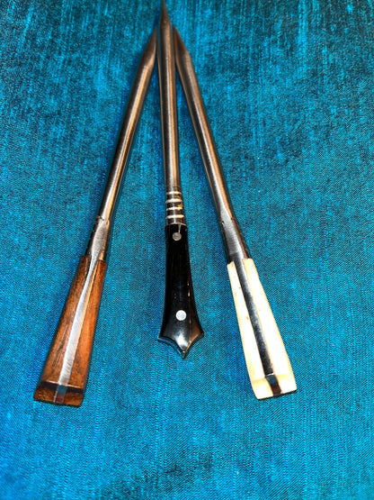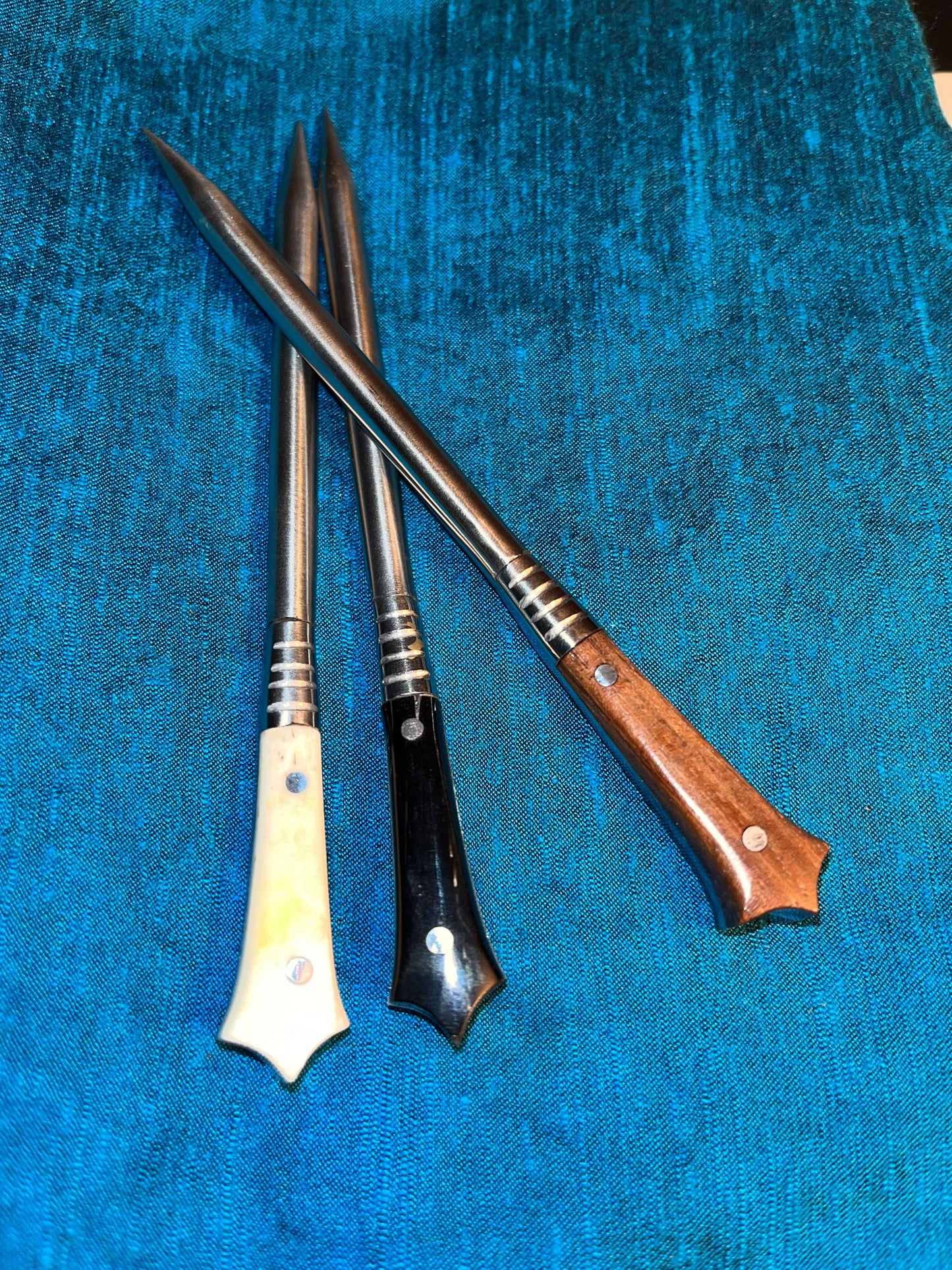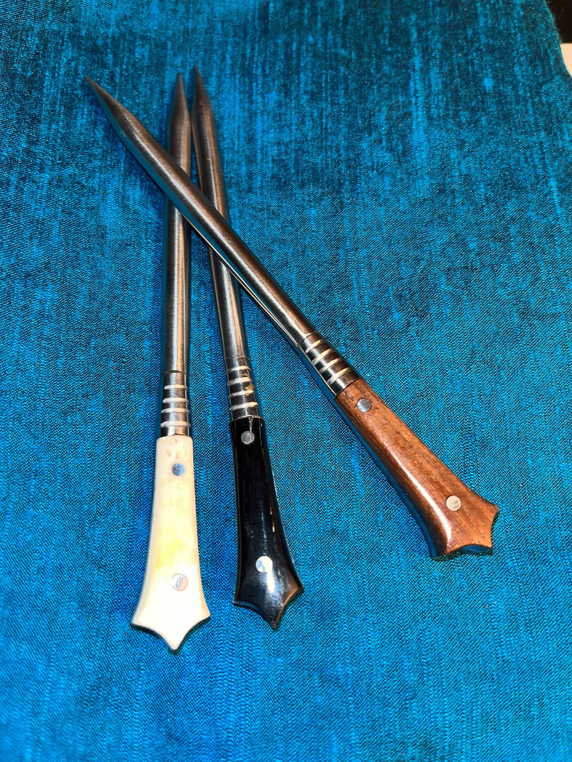 Le point fort de ces ensembles sont les poignées qui ont de belles textures et couleurs. Les manches sont en bois, en os ou en corne noire. Les manches en corne peuvent présenter des rayures blanches naturelles.