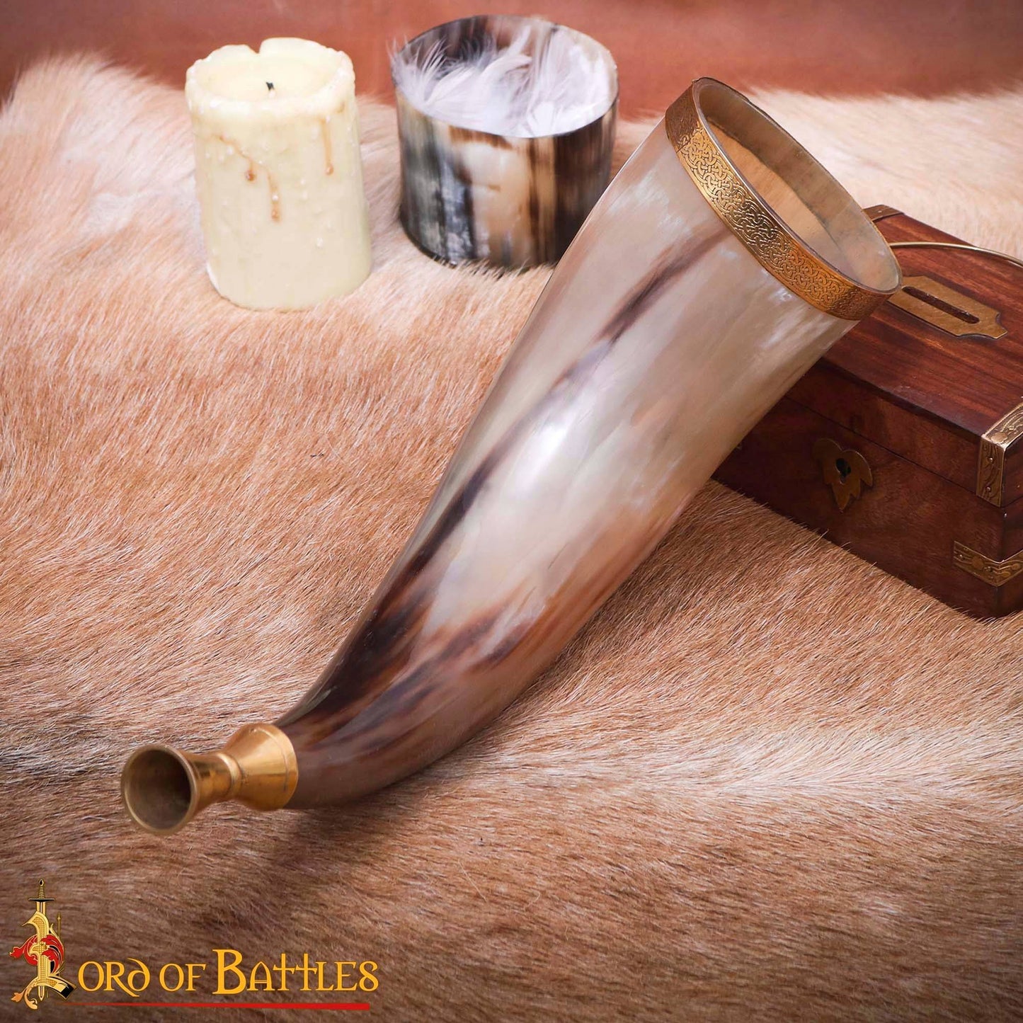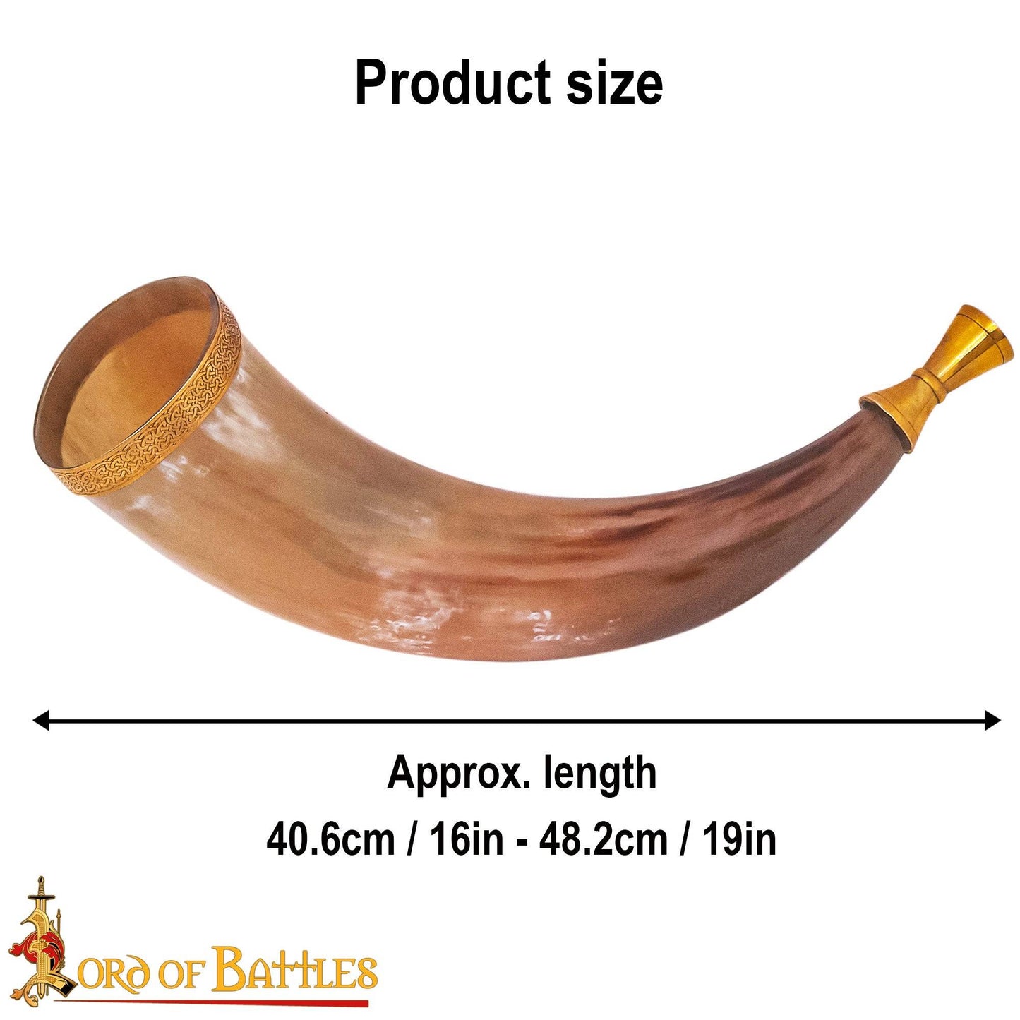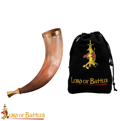 Cette corne est fabriquée à la main à partir de corne de bœuf d'origine éthique, qui dure plus longtemps que ses homologues synthétiques. L'embout et le bord en laiton massif permettent le son d'un véritable cor de guerre.