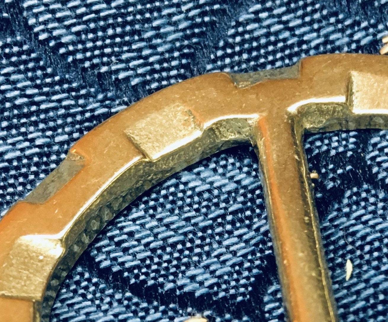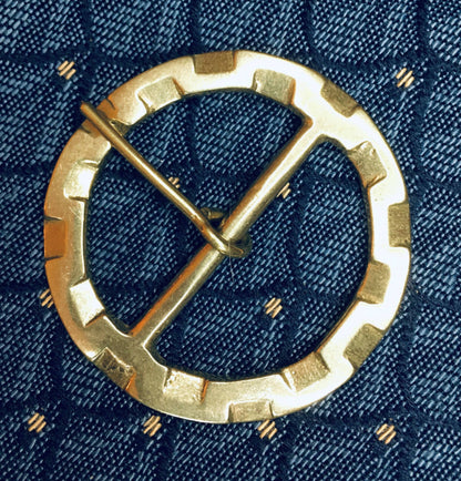 Comme l'original, cette boucle est en laiton avec des décorations rectangulaires le long du cadre. Le schéma des antiquités portables suggère une date d'environ 1400-1500 pour ce type de boucle. Sa grande taille en fait un bon choix pour une ceinture ou un baudrier plus large.