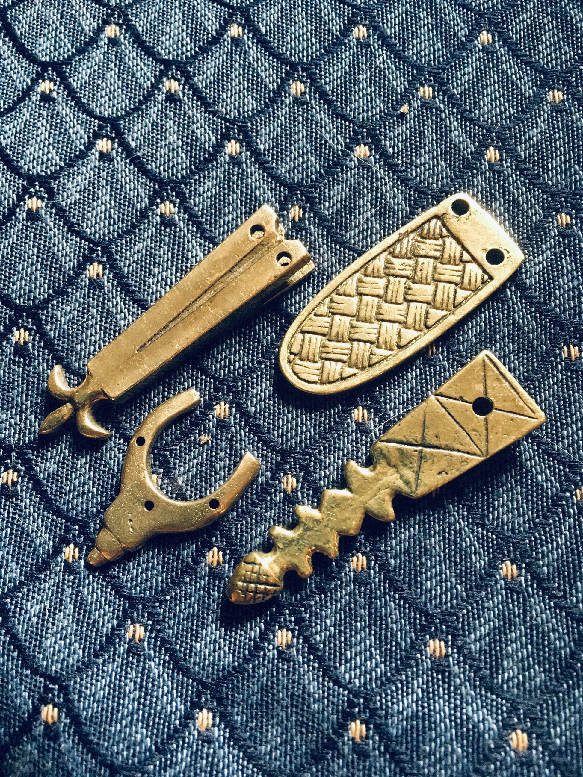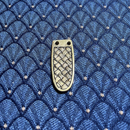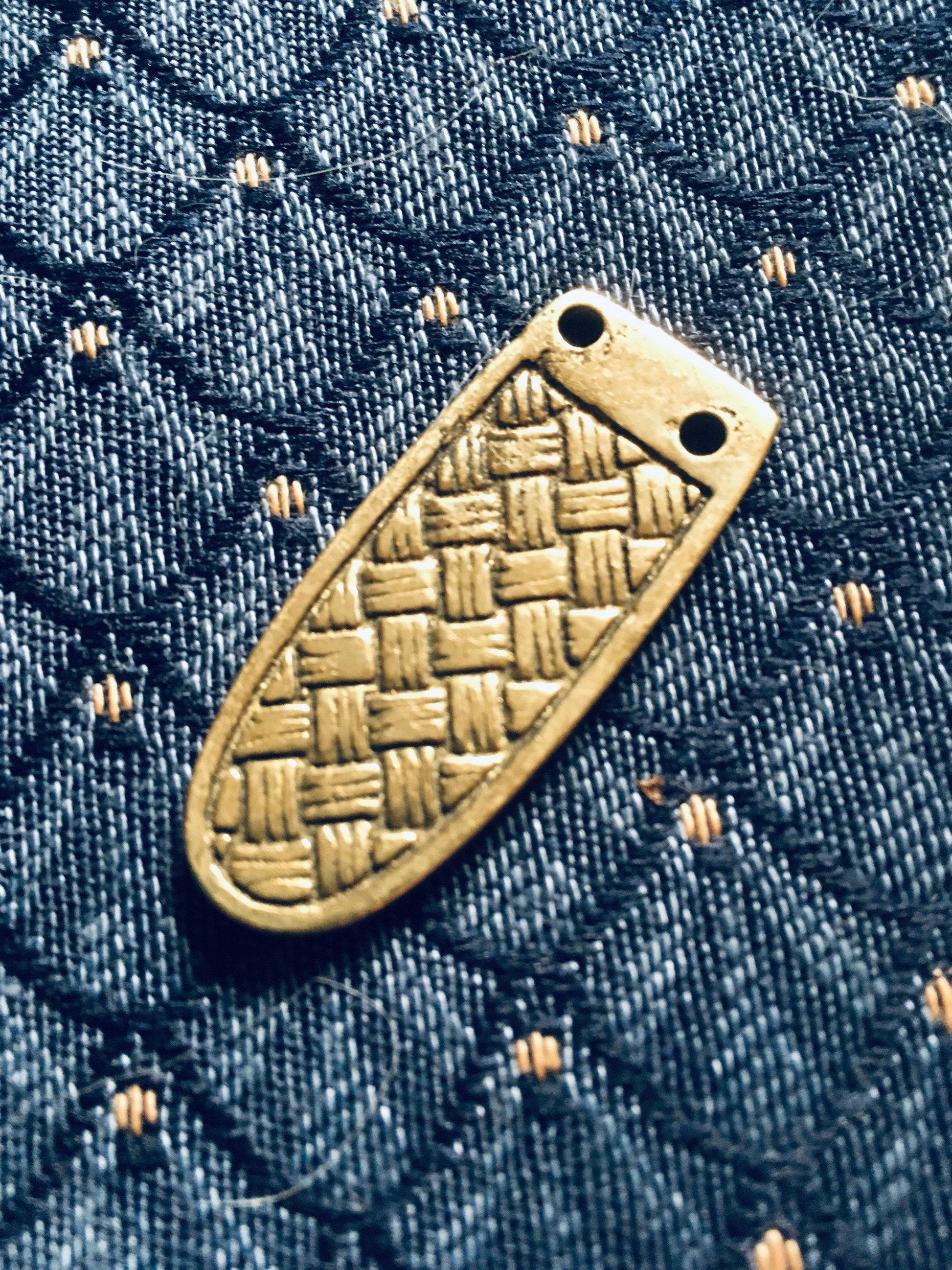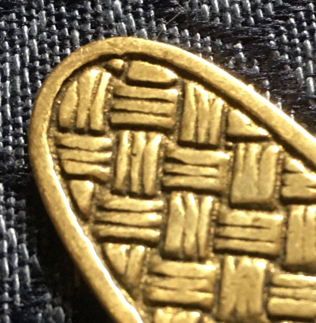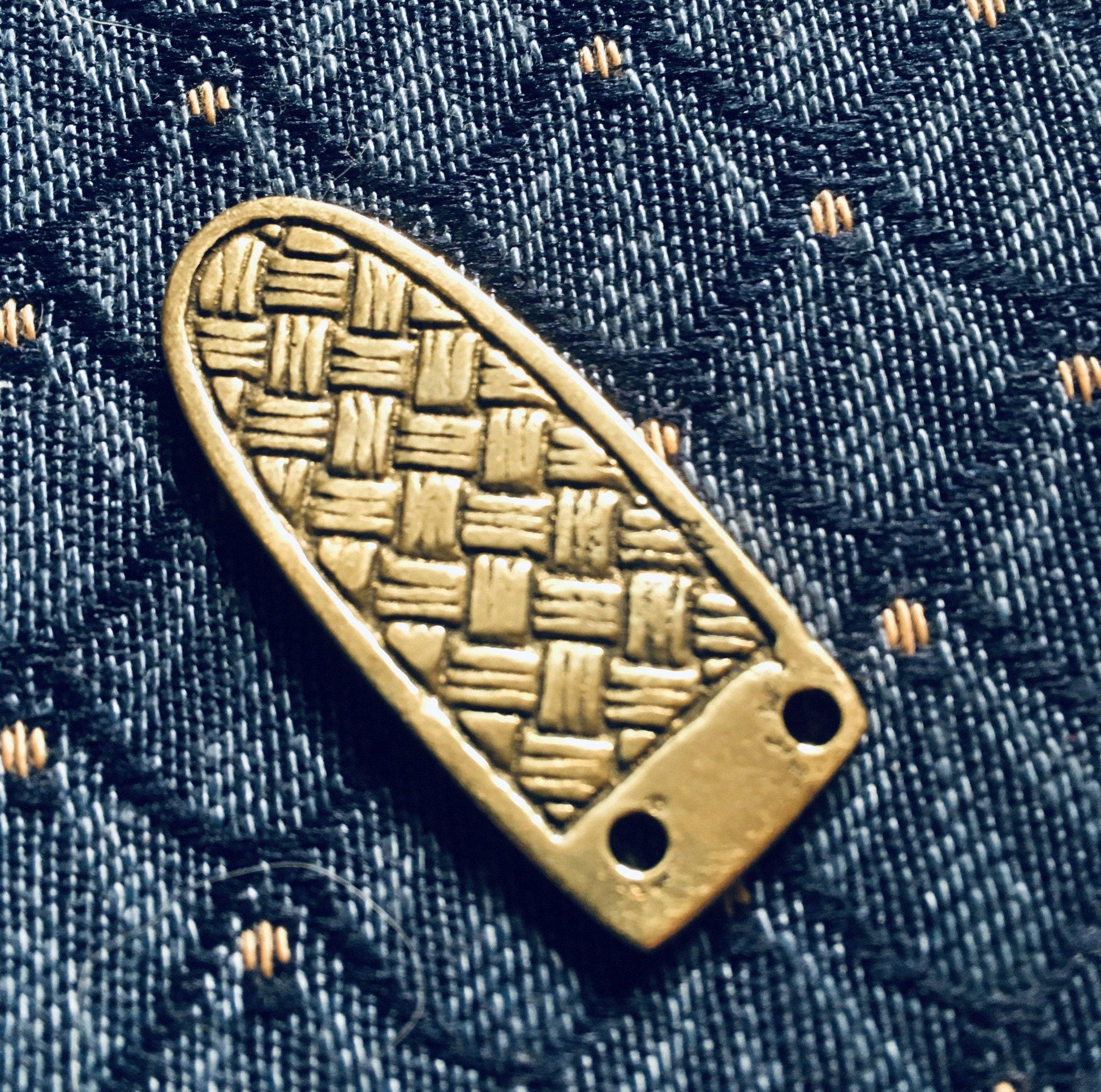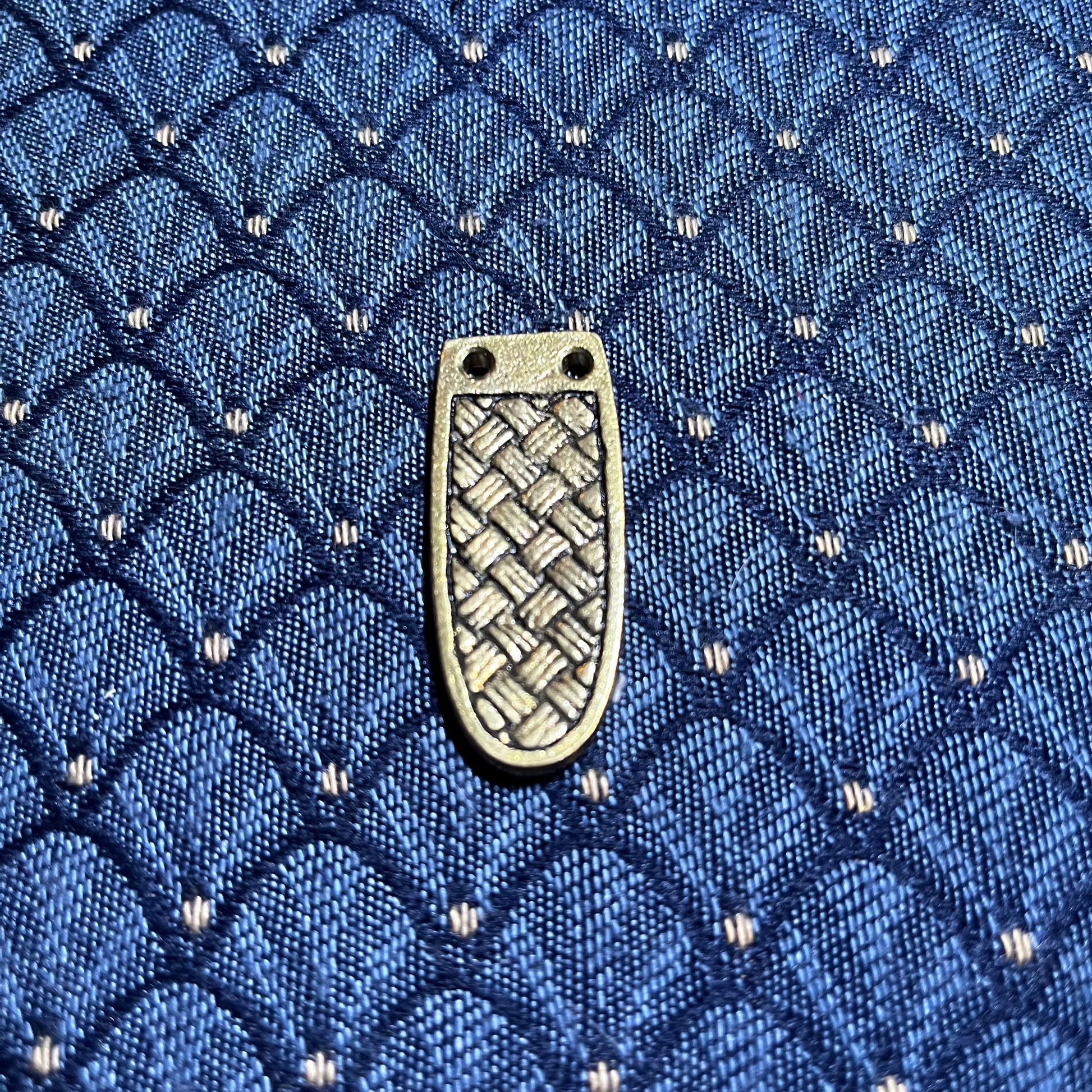 Les extrémités de sangle sont faciles à fixer au bout d'une ceinture à l'aide de rivets ou de fil. Ils ajoutent à la fois ornement et authenticité à votre tenue. Cette jolie pièce en laiton présente un délicat motif de vannerie, soigneusement mis en valeur avec une patine noire.