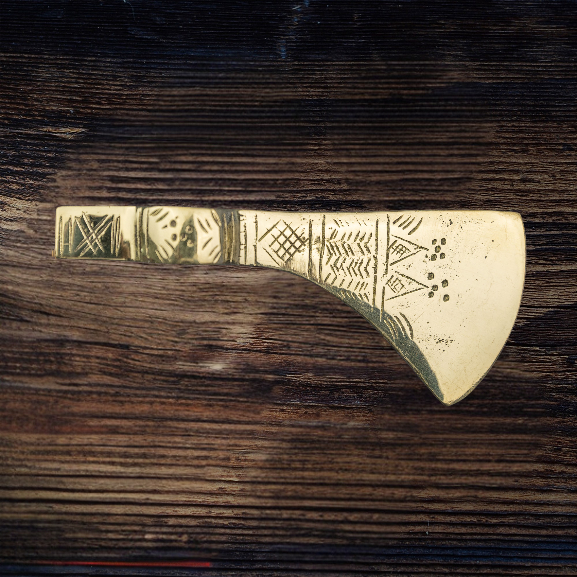 Cette petite beauté impressionnera sûrement tous vos amis sur le terrain de lancer de haches. La tête est en bronze massif avec une finition brillante. La hache est décorée de motifs incisés typiques des haches du début du Moyen Âge. Il est livré sans poignée, afin d'être personnalisé selon vos besoins.