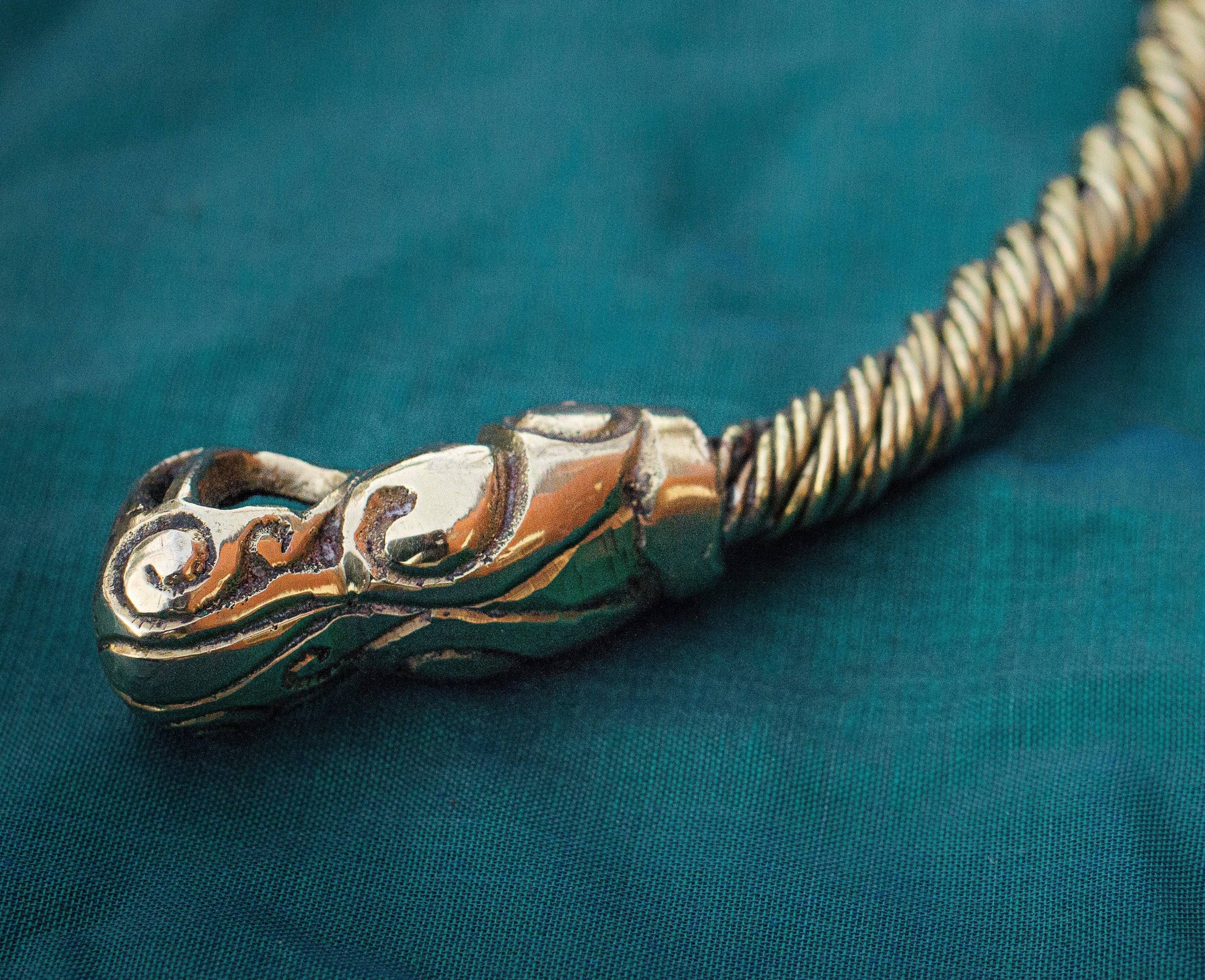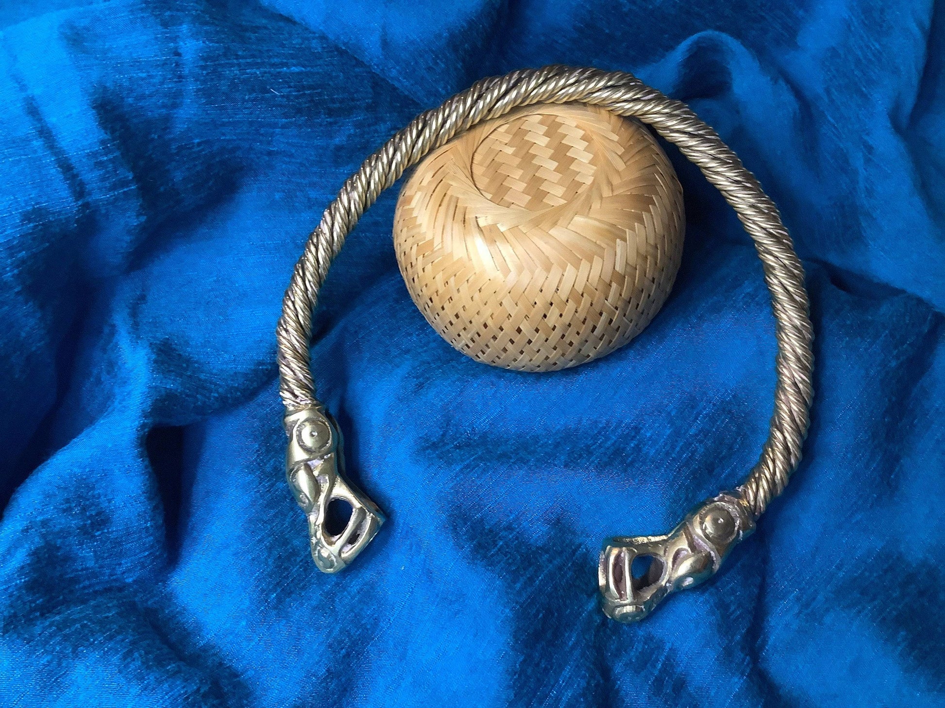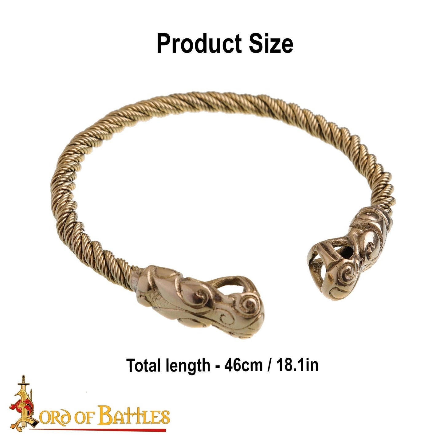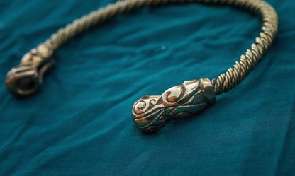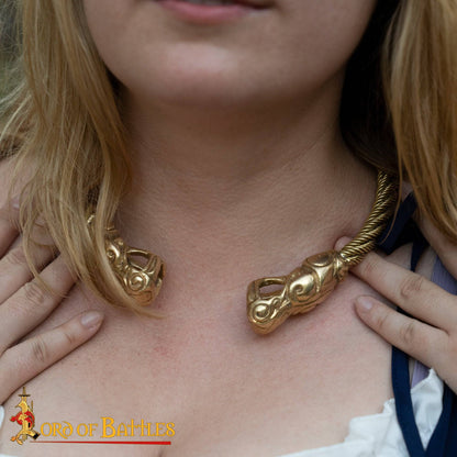 Ce torque est fabriqué à partir de laiton massif pur avec des détails Viking complexes. Il présente un design d'inspiration historique, basé sur des objets scandinaves similaires du 10ème siècle.