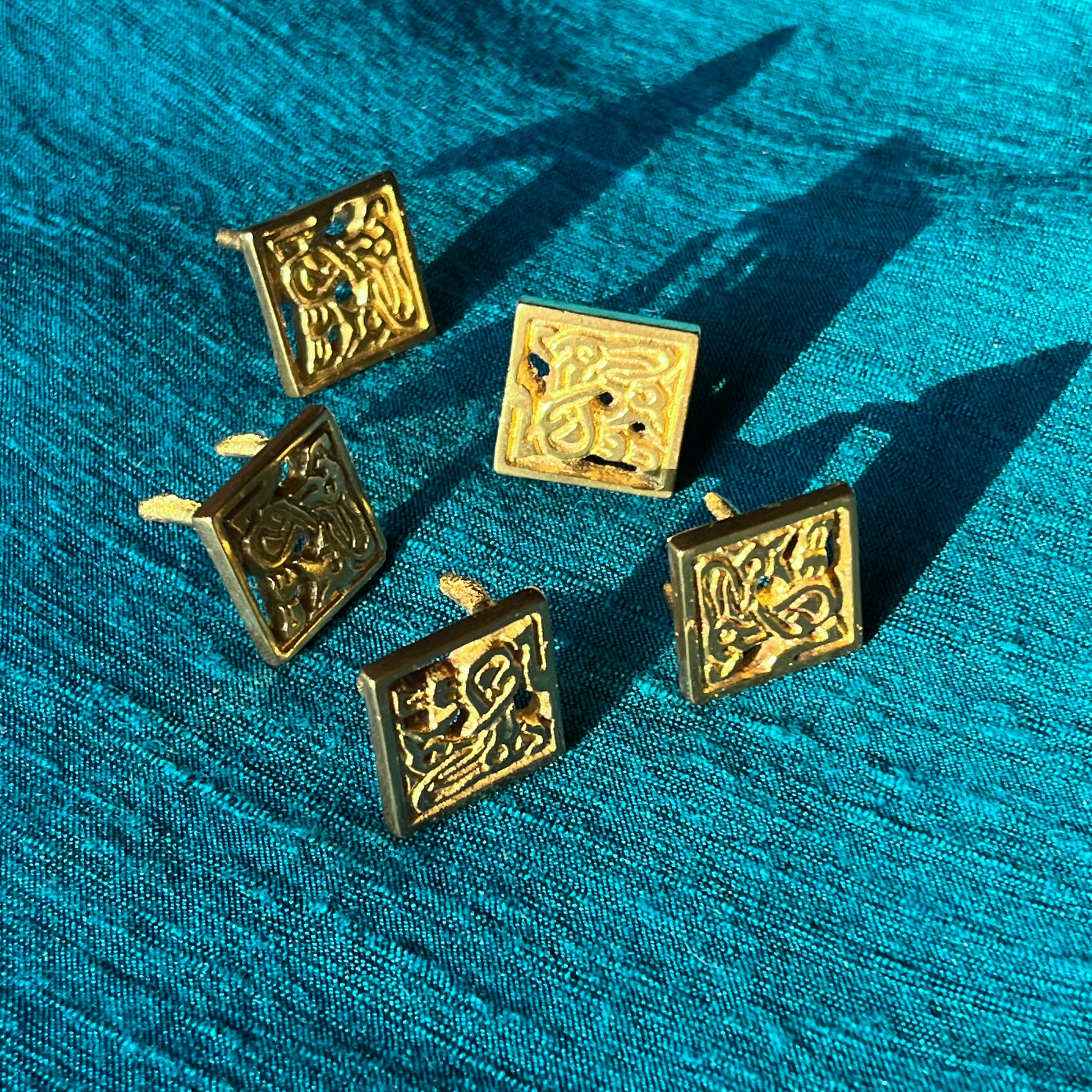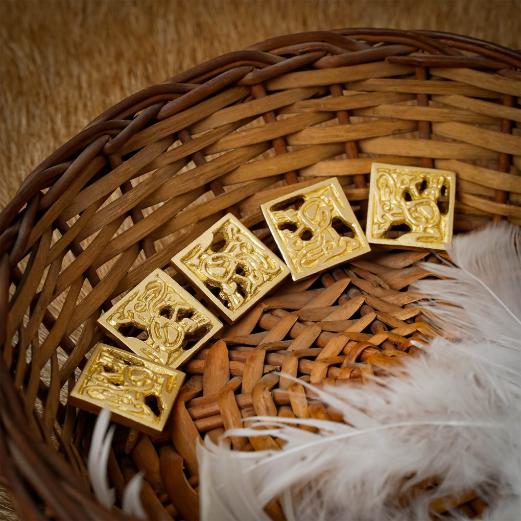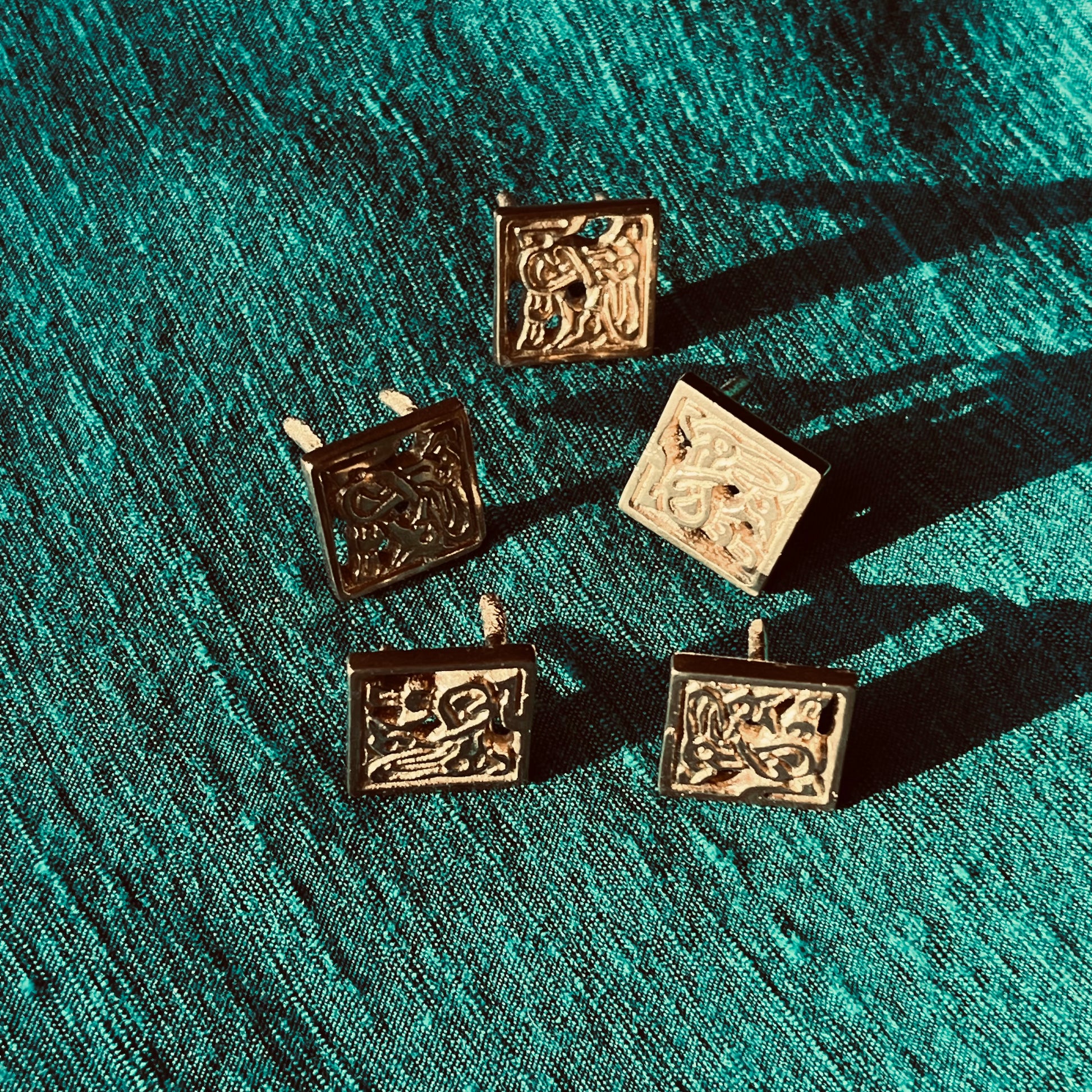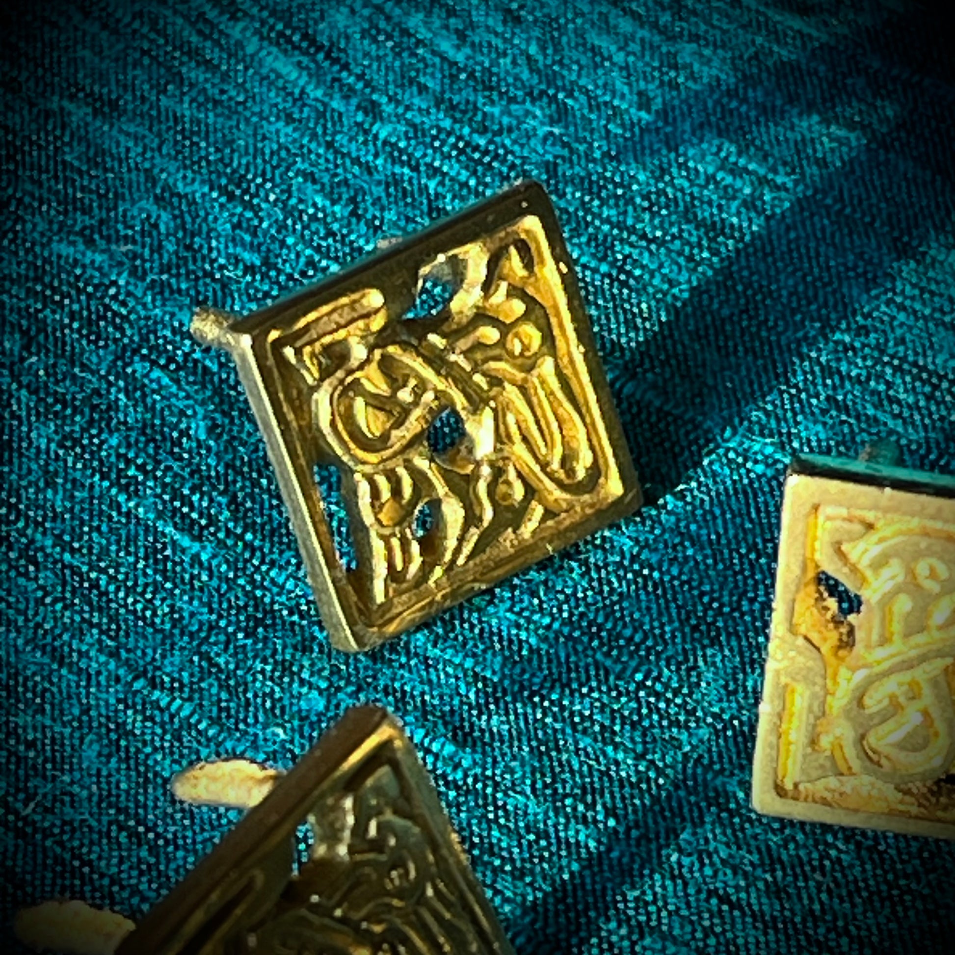 Des supports comme ceux-ci seraient insérés le long d’une ceinture pour ajouter des éléments décoratifs. Vous pouvez voir la grande variété de montures disponibles sur l’image de groupe du Musée national des antiquités de Leiden, aux Pays-Bas.