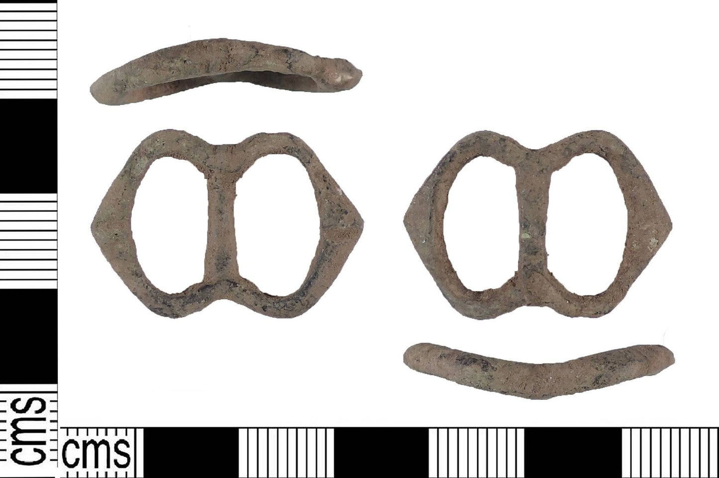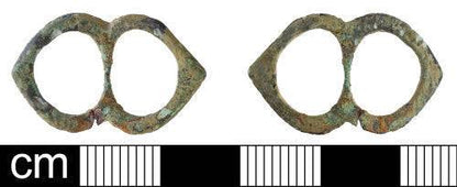These buckles were common throughout Northern Europe in a variety of sizes. Used for belts and garters they have a very attractive shape. They have appeared archaeologically as early as 1350 and lasted at least until the 16th.
