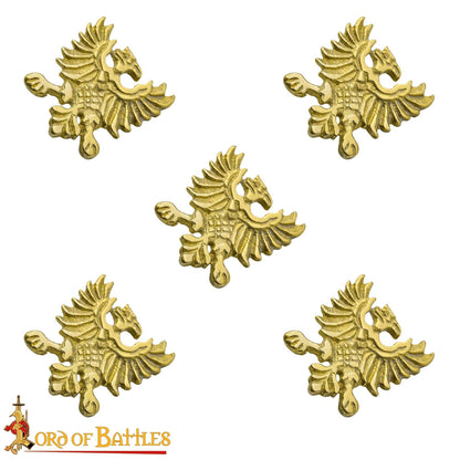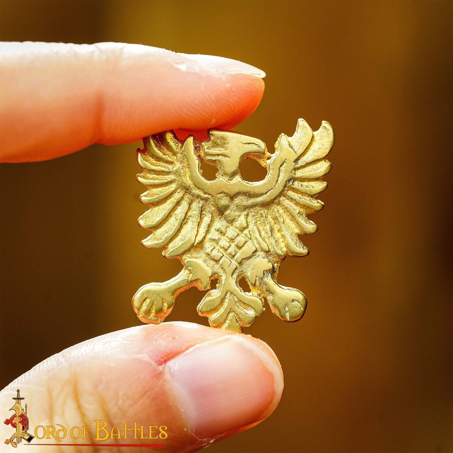 This mounts are of an Eagle Displayed, which in heraldic terms means legs and wings spread open. This common heraldic device is still used by many countries such as Poland, Romania and even the United States. Eagles were valued for their ferocity and hunting skills, so adding them to your garb will surely make you a fierce warrior indeed!