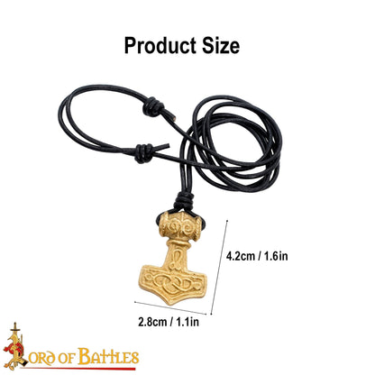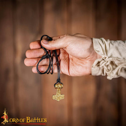 This 4.2 cm Mjölnir pendant is pure solid brass and is fastened using a genuine leather cord.