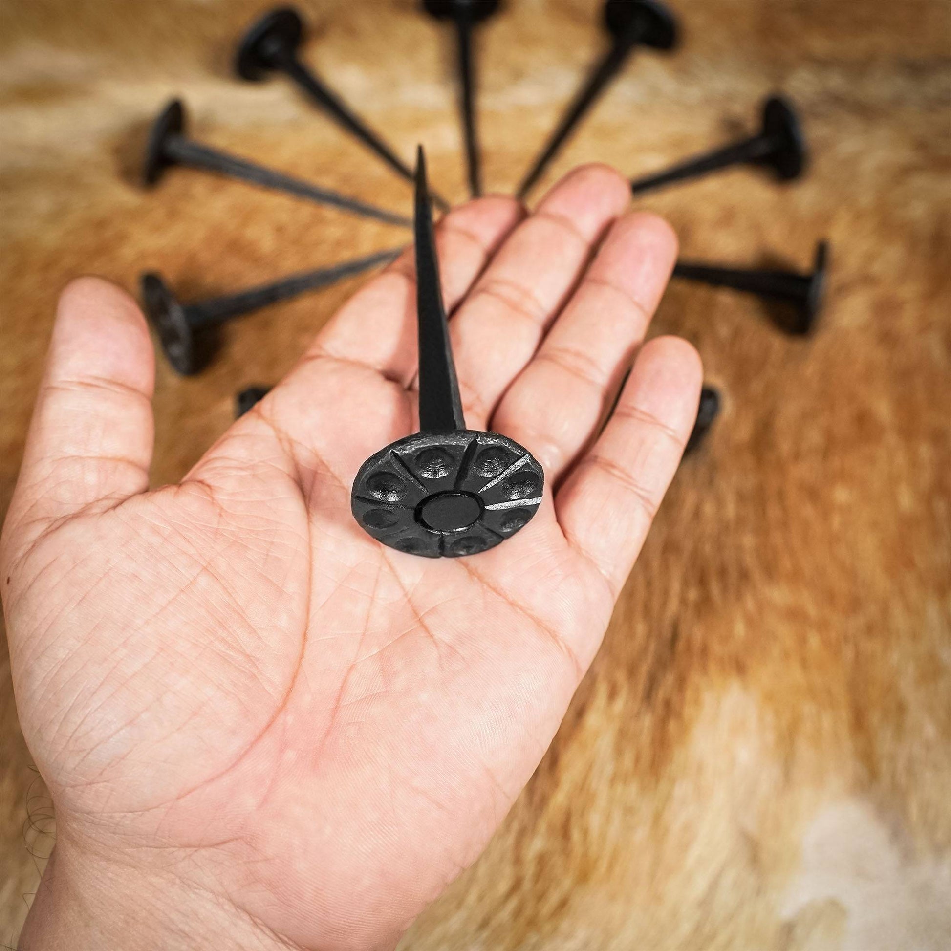 A stunning focal piece for your gothic inspired home, these large nails provide a unique way of decorating all your wood-working projects. The long length of this nail makes it perfect for joining beams or other large pieces of wood together. In medieval times long nails like these would be hammered through two pieces of wood then have the tips folded over to prevent invaders from pulling them out of doors and gates.