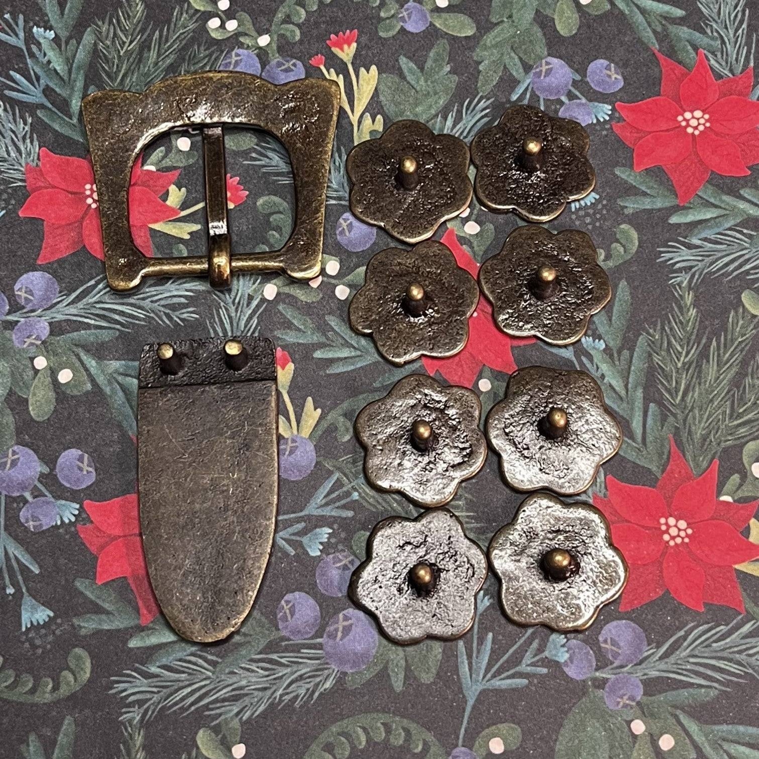 Celebrate the Viking era with our exclusive Medieval Belt Fitting Set. This holiday belt bundle provides everything needed to customize your medieval attire while showcasing the exquisite artistry of the Borre style. The set includes: