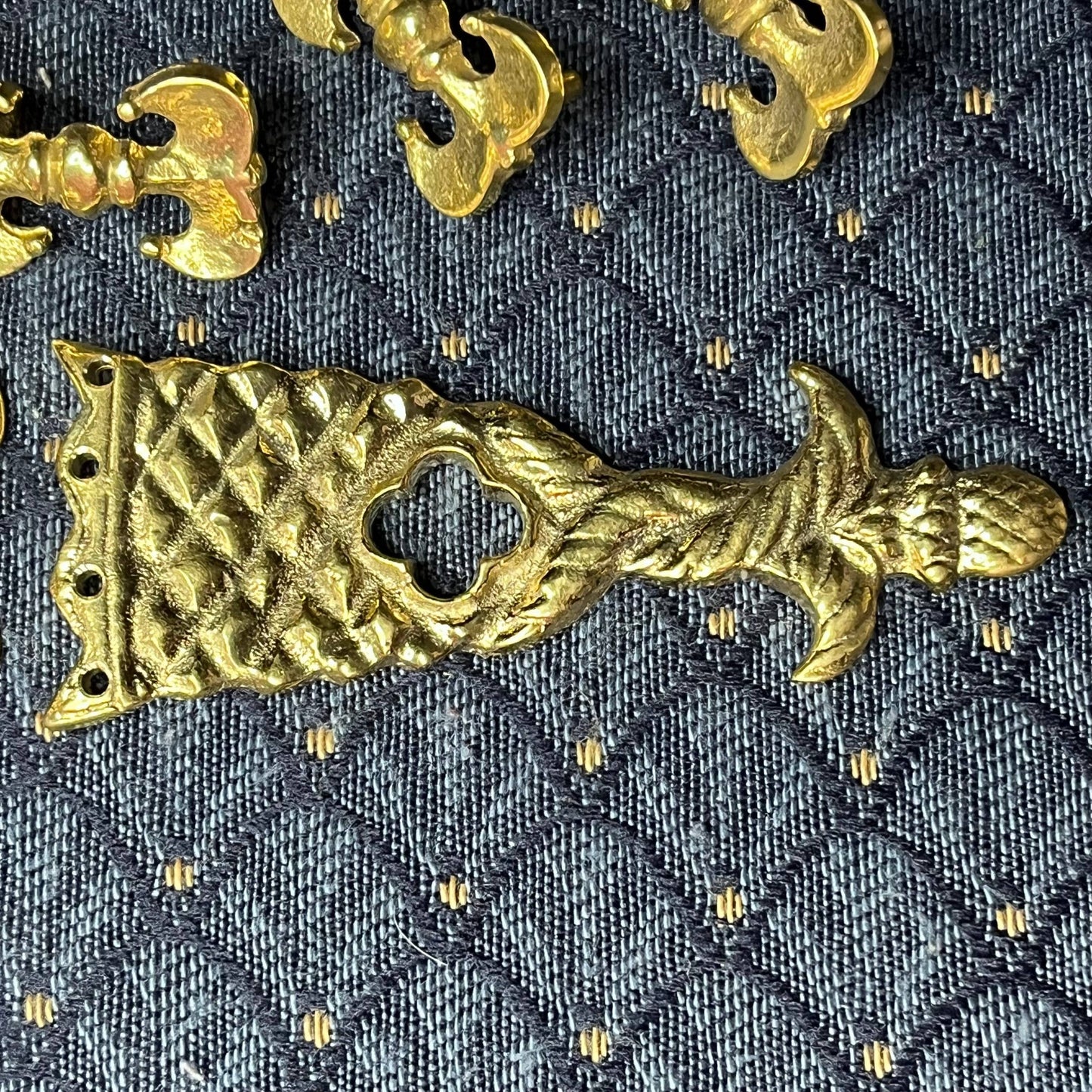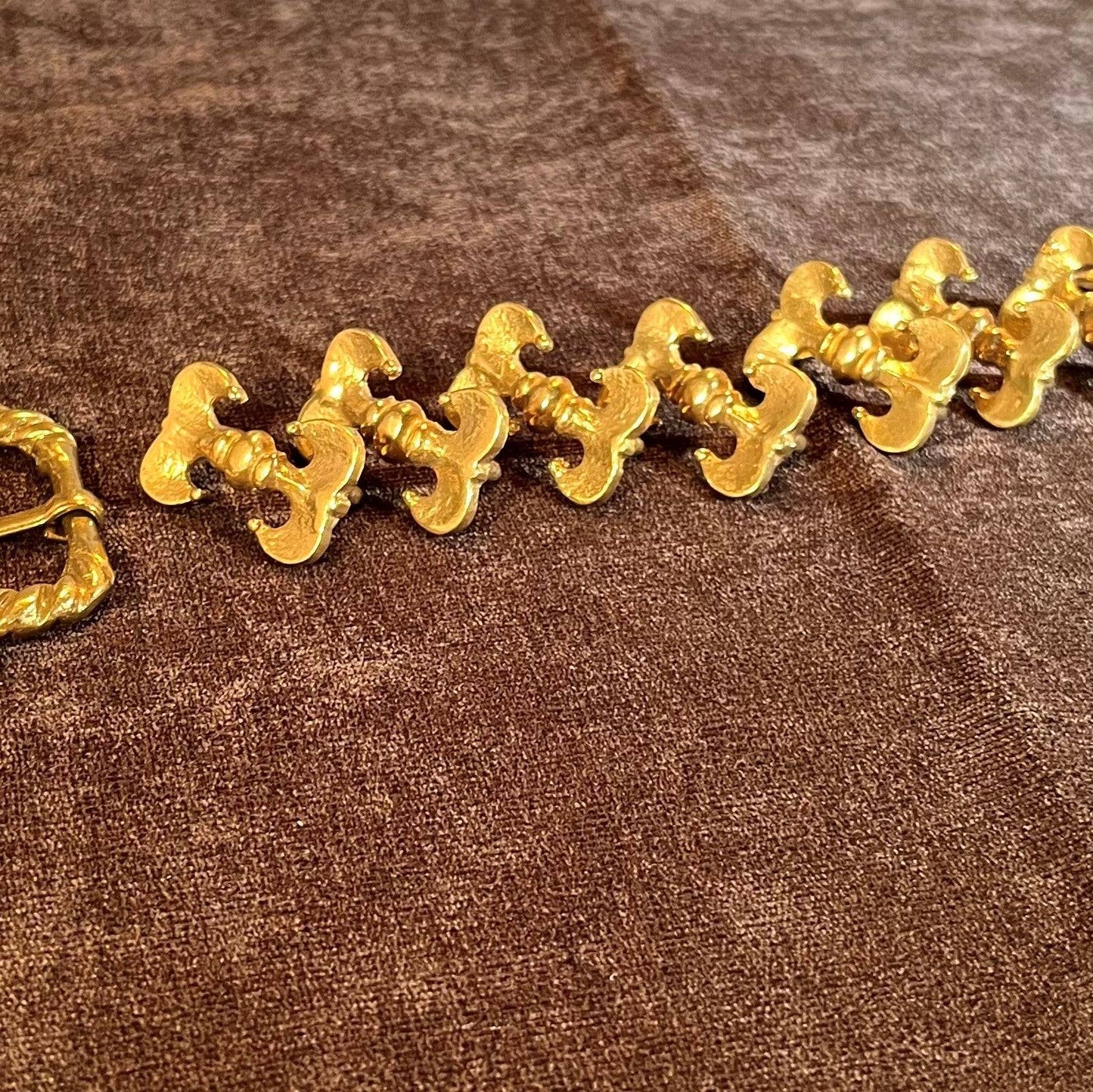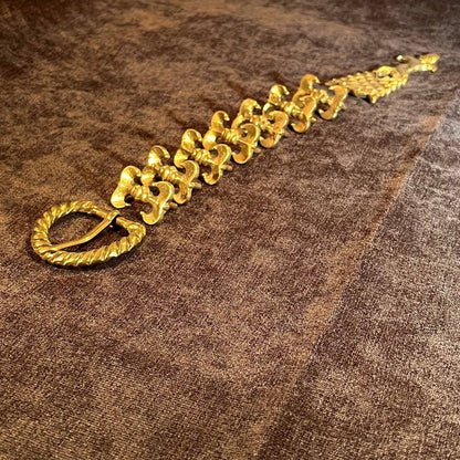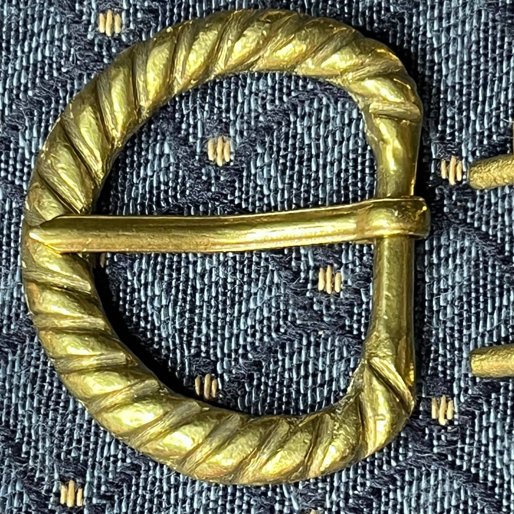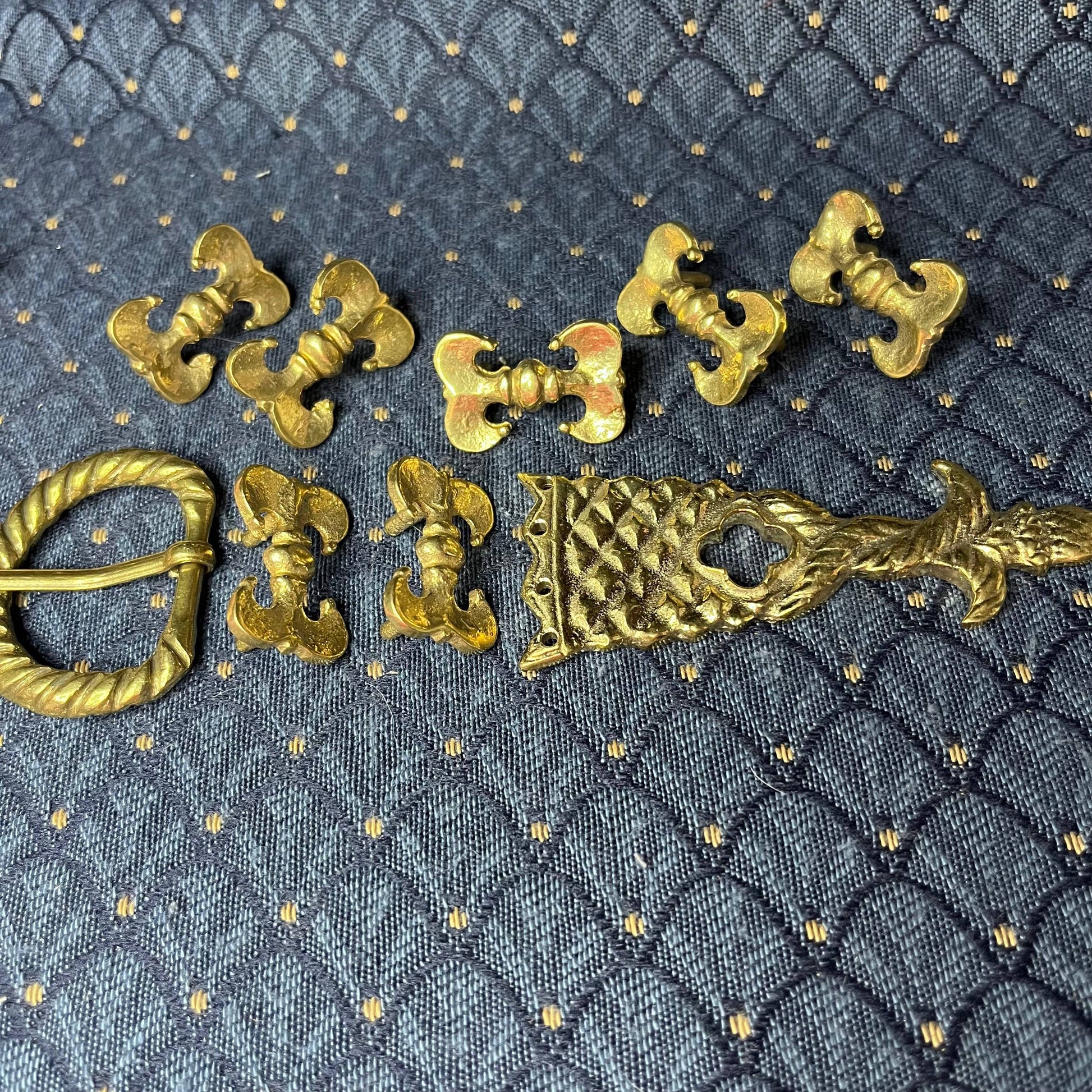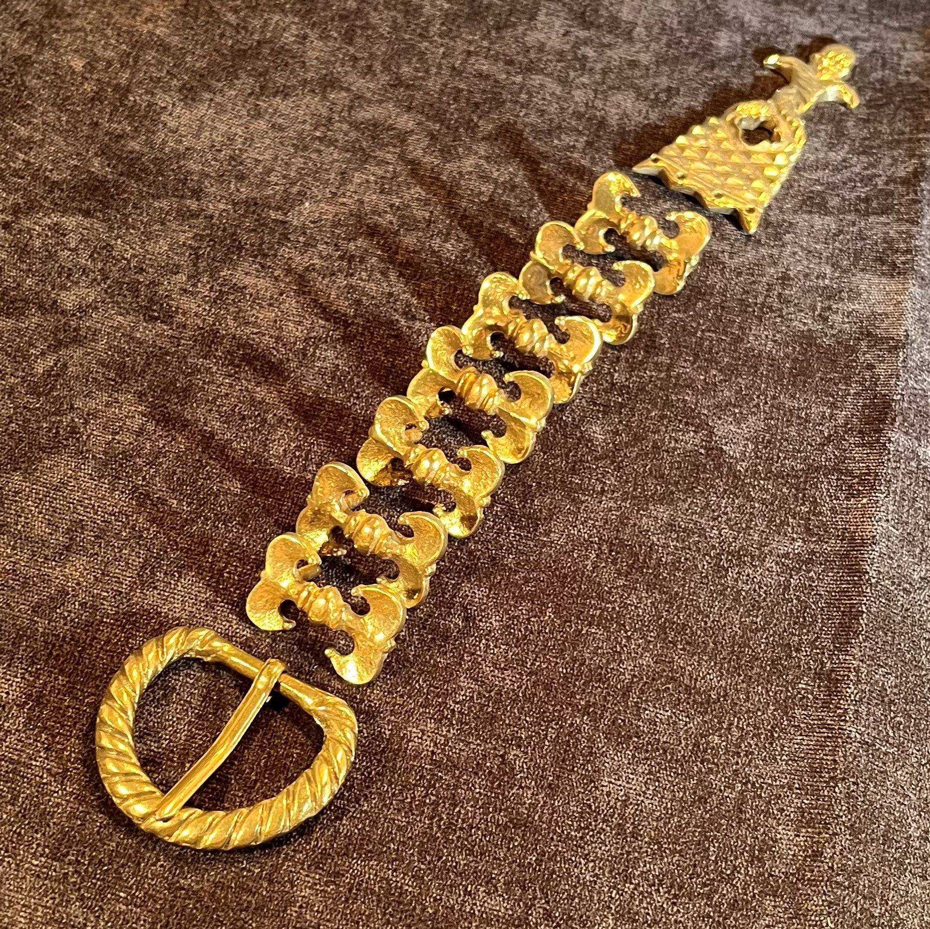 This Holiday Belt Bundle is ideal for medieval reenactors interested in the 14th century. It features a solid brass buckle with twisted design, a strap end tipped with a tiny acorn, and 8 belt fittings styled as a fleur-de-lys. Crafted for durability, it measures 3 cm (1 1/4 inch) wide, and makes for a perfect gift that provides the crafter hours of fun.