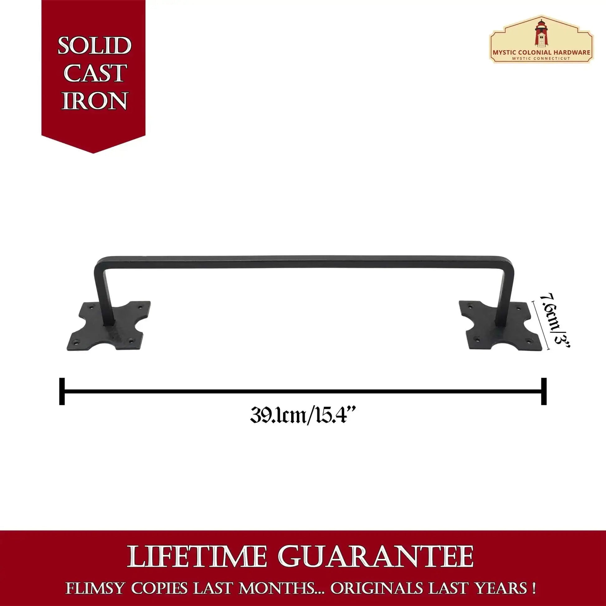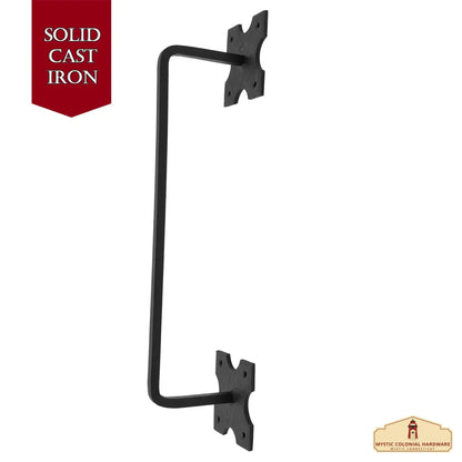 This cast iron towel bar or door handle brings a touch of medieval-inspired style to your home. Hand forged with a unique gothic design, it adds a rustic and one-of-a-kind element to any space. Perfect for those looking to add a touch of character to their home decor.
