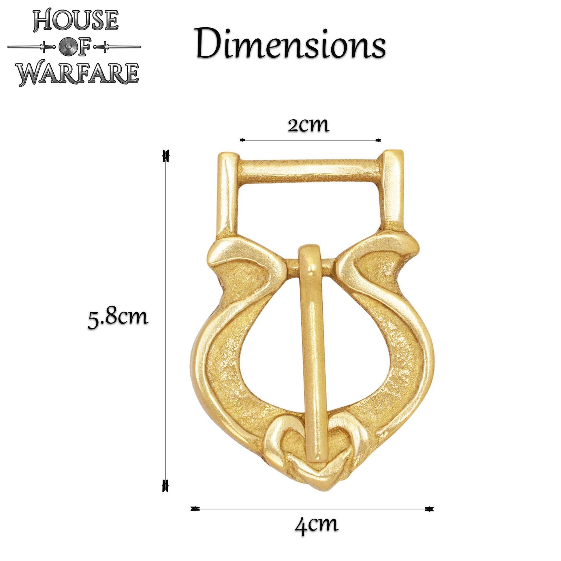 This Viking Rus Buckle is a replica of a design produced from the 11th to 13th century. It is based on an original found in Estonia (see link below). It is solidly made from pure bass and would be a wonderful addition to any reenactor's garb. It is intended for a 2 cm (slightly less than 1 inch) strap.