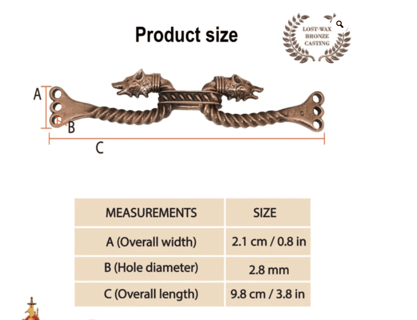 Wolf and Dragon Head cloak clasp, cast in solid bronze, Viking style