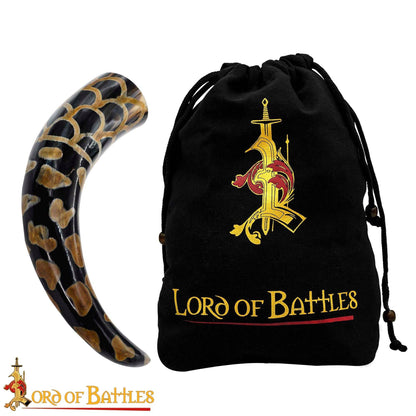 Pour a drink on frosty evenings in our authentic drinking horn, handmade from genuine ox horn, embellished with intricate burnt scales. Its unique charred scales design makes it great for gifting it to your loved ones as well! Since it comes with a bag, it can effortlessly be taken care of for years to come!
