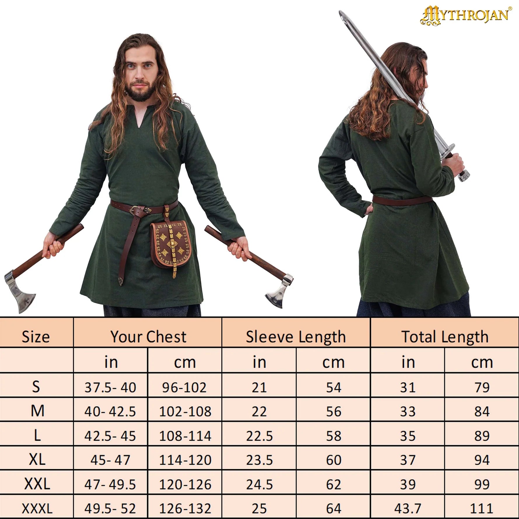Our affordable cotton tunic is available with long or short sleeves. The short-sleeve tunic is a lightweight choice, perfect for summer LARP events, SCA meetings, medieval fairs, and reenactments. The long sleeve tunic provides a more authentic look, perfect for viking or early medieval characters.