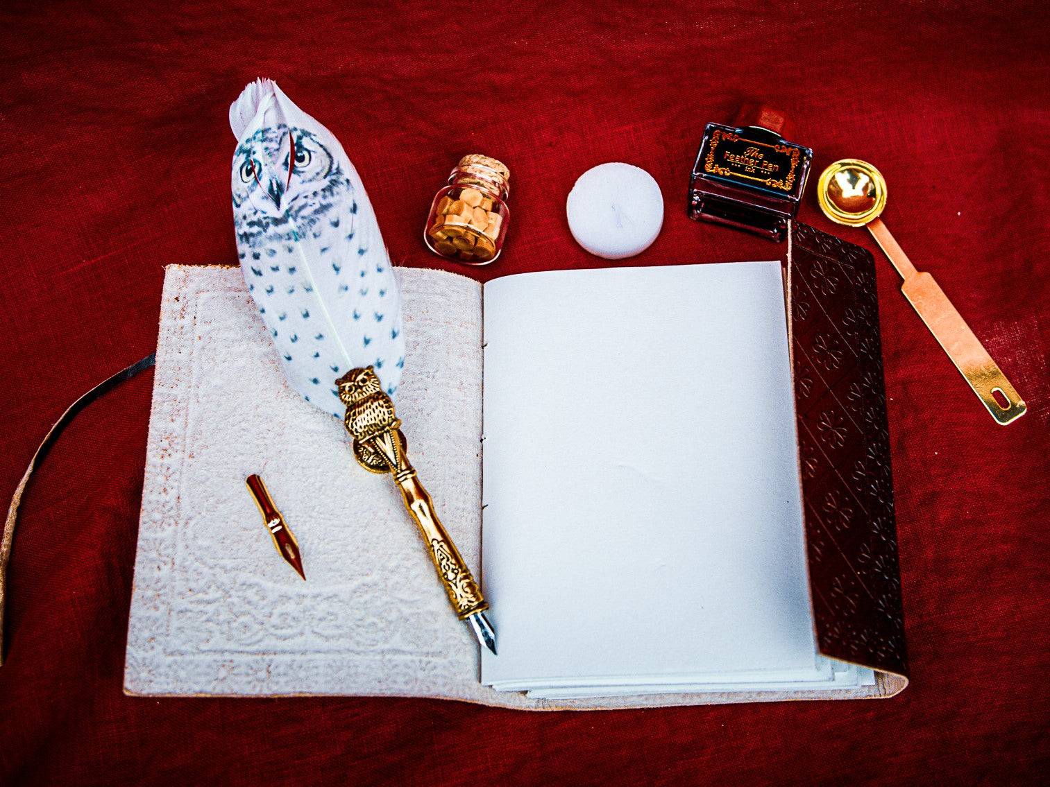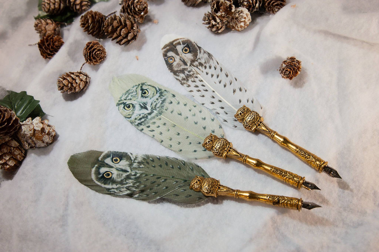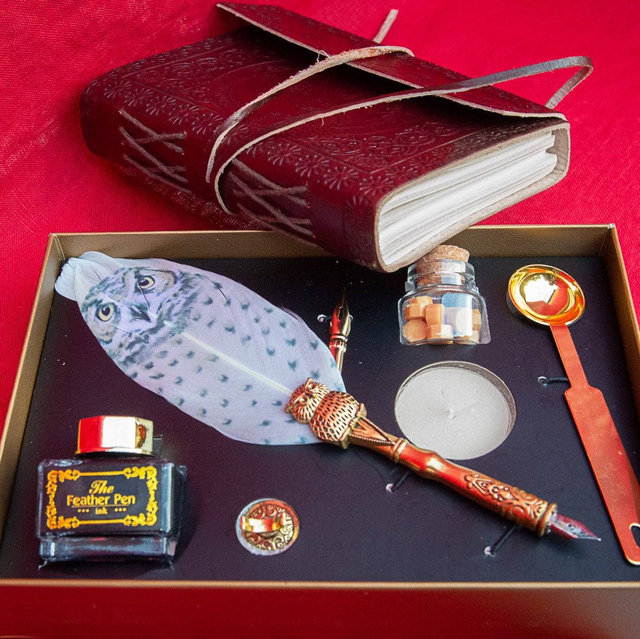 Perfect for Harry Potter fans who want a themed writing set, it features an owl sculpted on the pen shaft and printed on the genuine feather. With pure black ink, two interchangeable nibs, a Fleur-de-Lys seal and elegant golden wax, this set is one of the most unique writing accessories on the market.