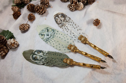 Owl Fountain Pen and Wax Letter Seal Stamp (Mint Green Feather)