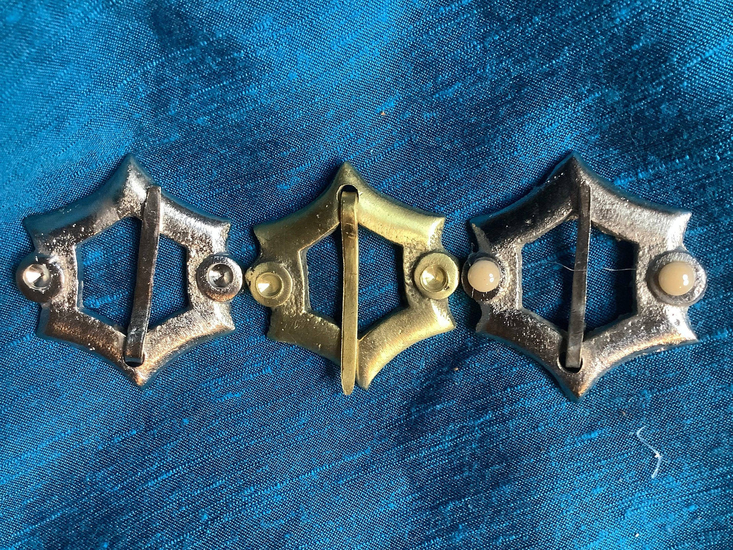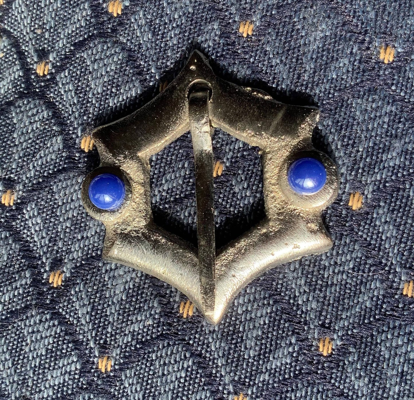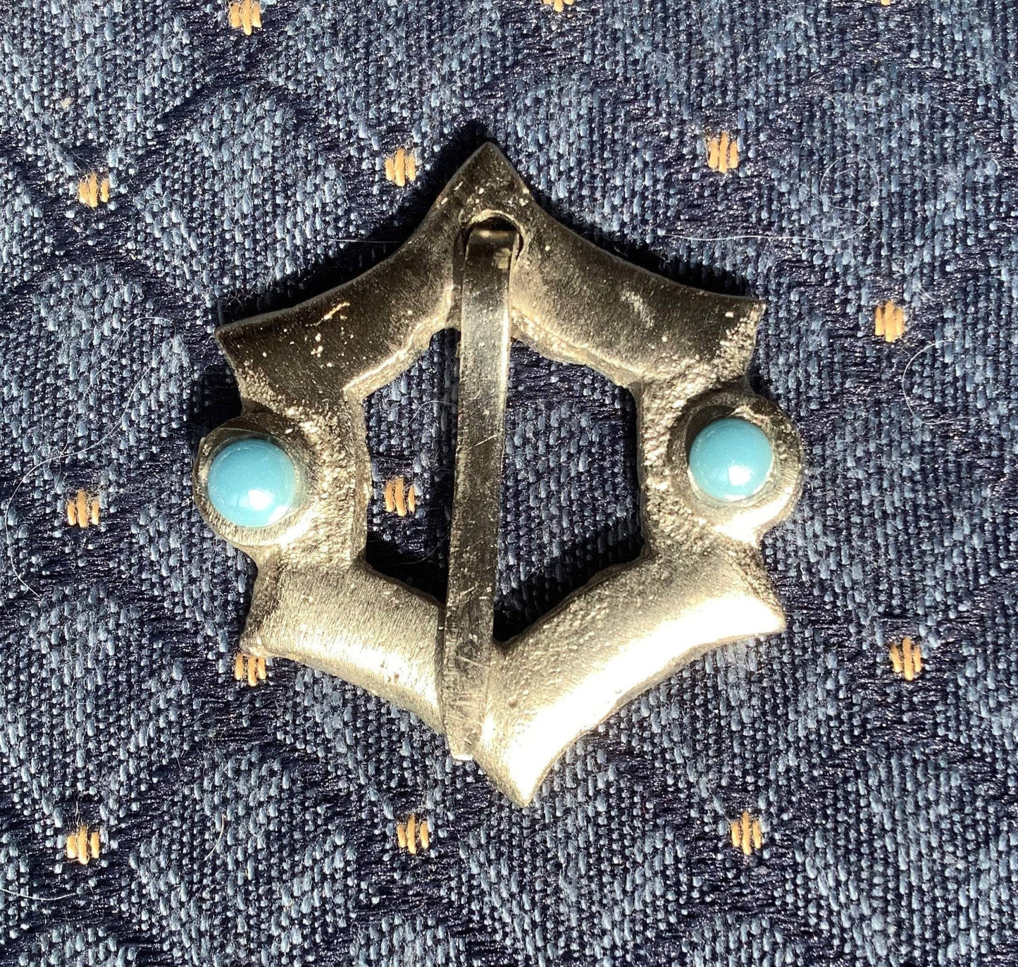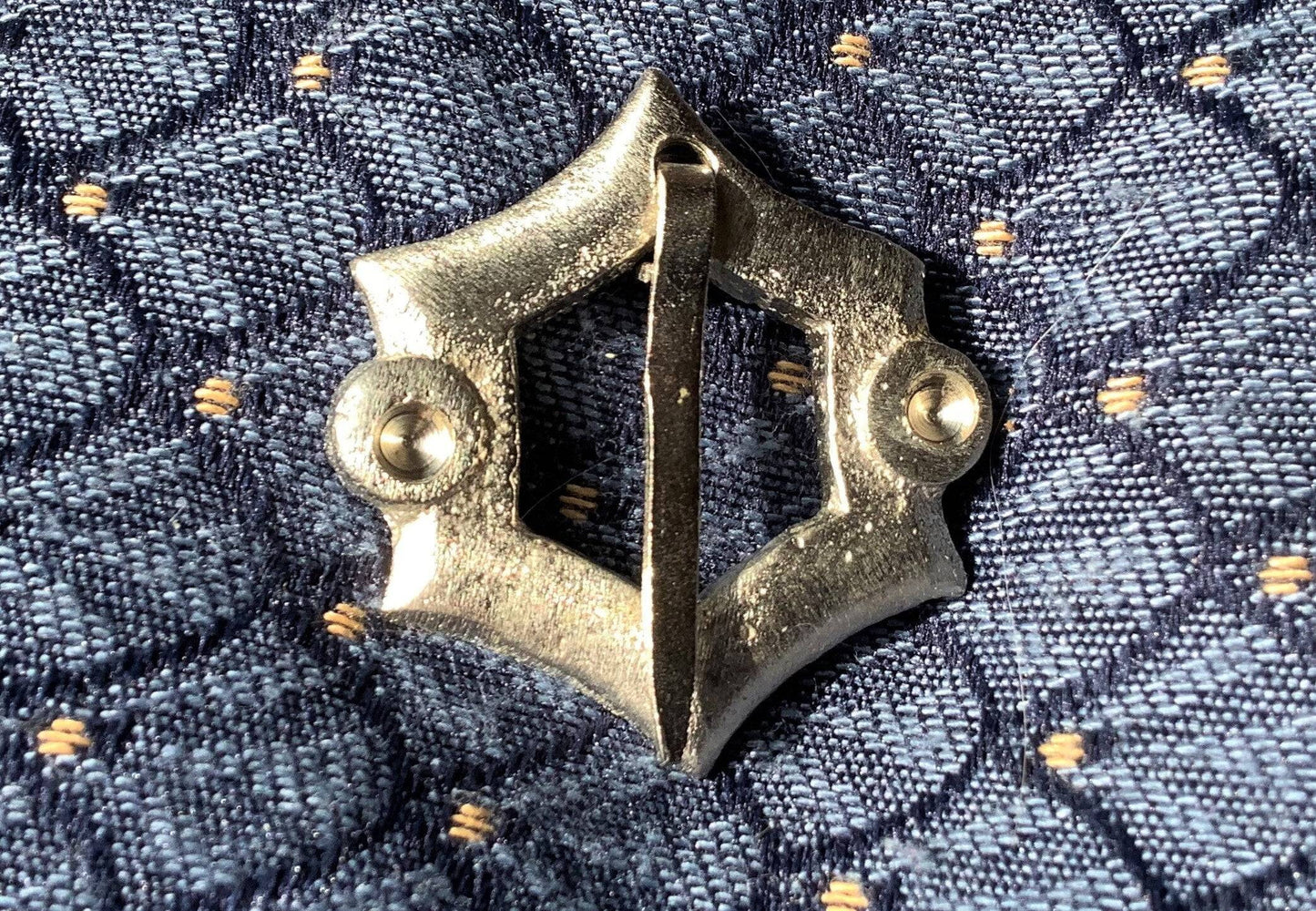 This is an unusual but not rare shape for medieval brooches. Our example allows you to show off your social status, through your choice of stones. Glass paste is found in base metal examples, garnets and sapphires decorated royal jewels.