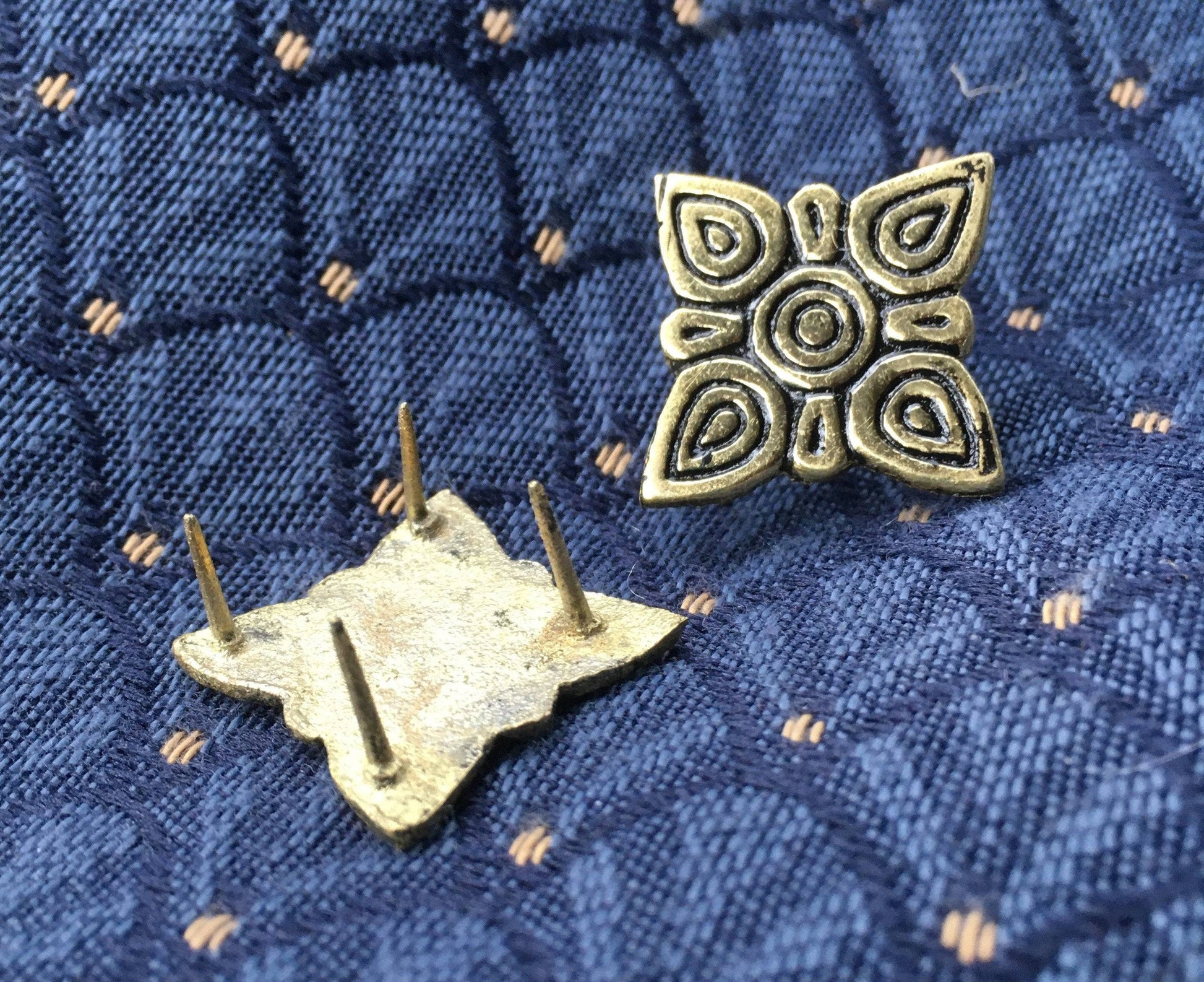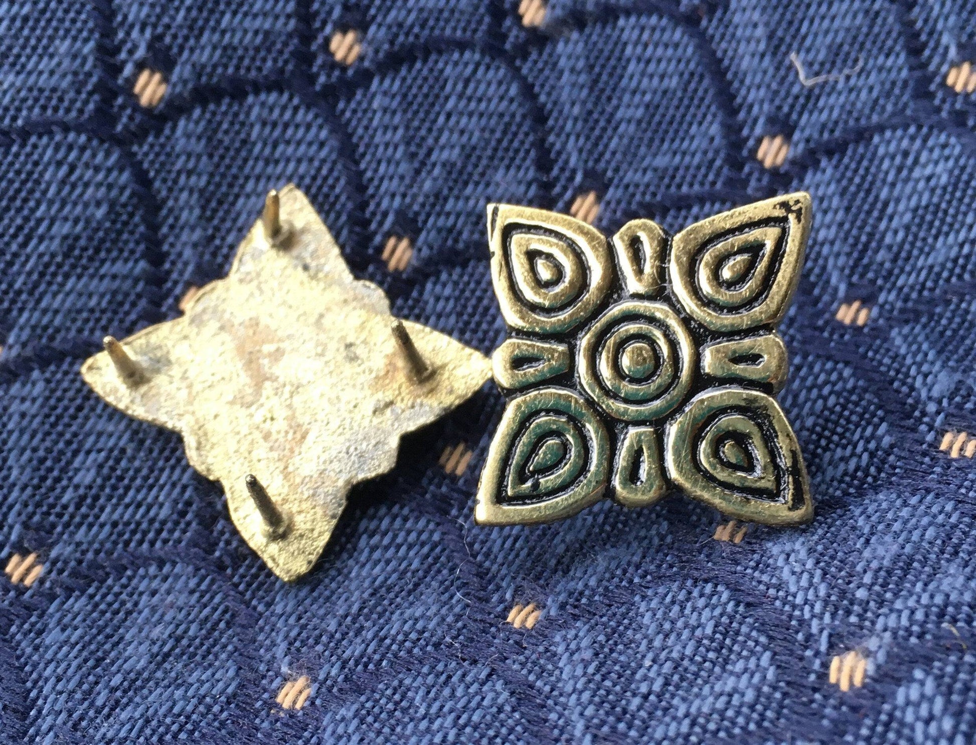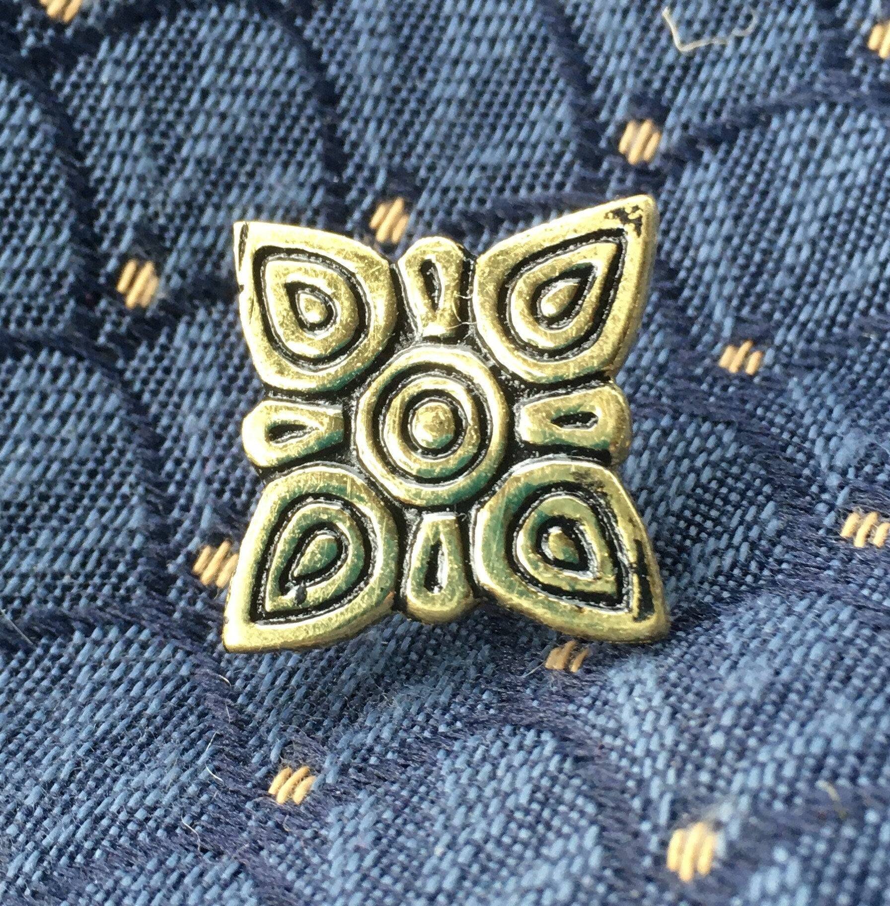 These mounts are dated to the 9th-12th centuries and were found at the Birka site in grave 93B. Although found in Sweden, This fitting is believed to be an exotic import as it is common on Tarsoly purses found in Hungarian and Kievan Rus sites. Available as a set of 4.